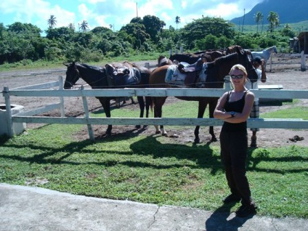 This morning, we had yogurt, granola, and fruit, which was very enjoyable. After breakfast, we had an Oceanography class (chemistry 2) down below in the salon, in which we learned all about salinity. Following our class, we had three choices: horse riding on the beach and around Nevis, bike riding roughly 30 miles around Nevis, or staying back on the boat or beach. Horseback riding ended around 12:00, and then we went into Charlestown to have lunch and explore the town. Biking ended a few hours later, and they also had some time in town. After a busy day, we came back to Ocean Star, showered, and had a fantastic dinner, which was salad, rice with peas and carrots, and meat, which was prepared by Sam and Chris. Tonight, we have 1st aid and CPR class with Dan and Graham, and tomorrow will be another wonderful day in Nevis.