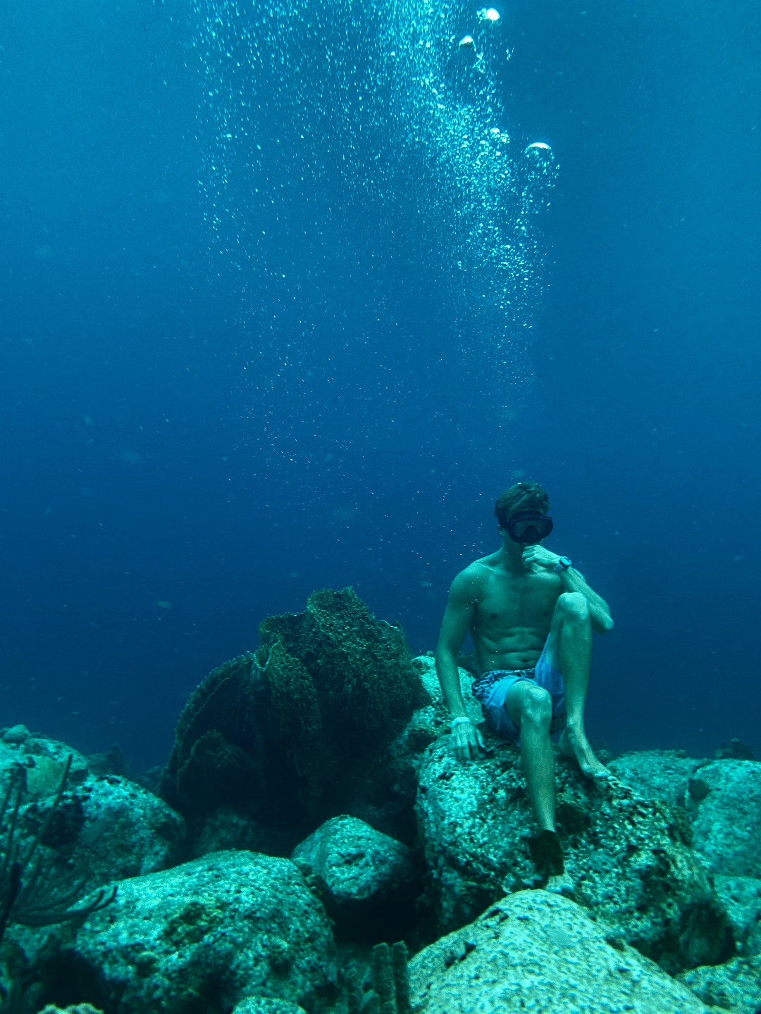 8. Joel. sitting on a rock.