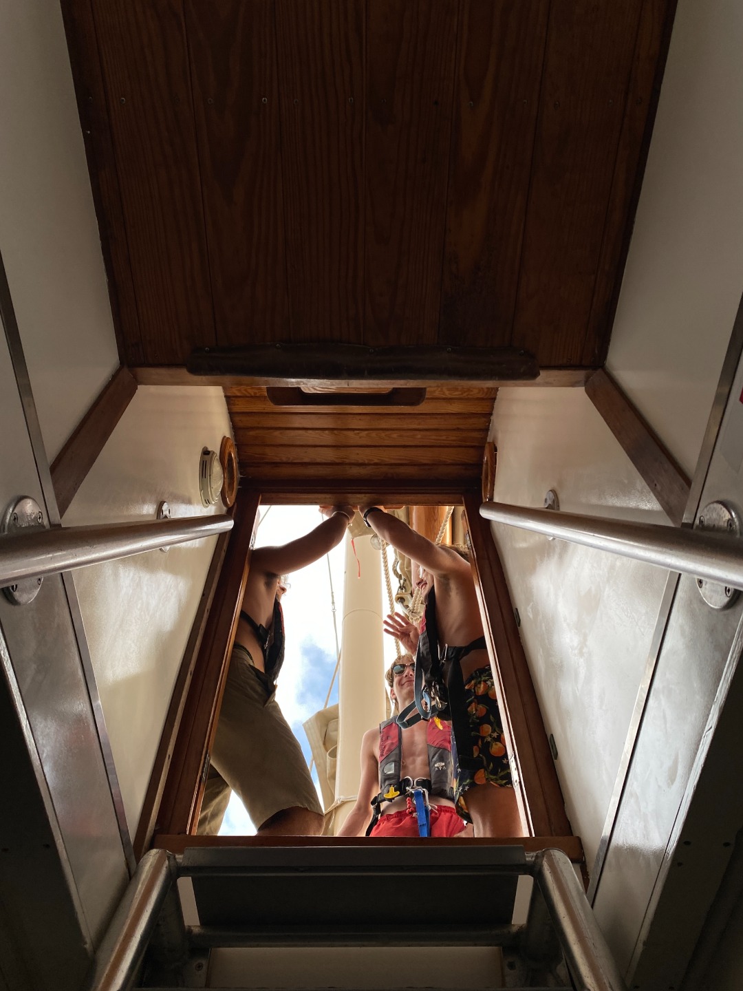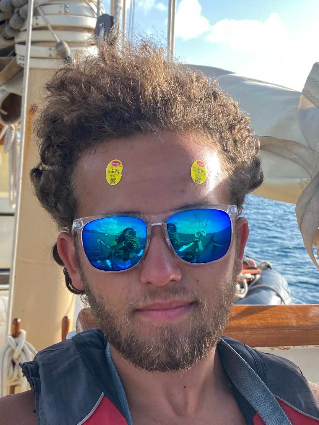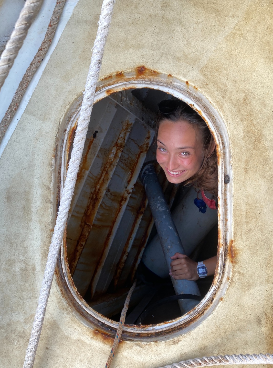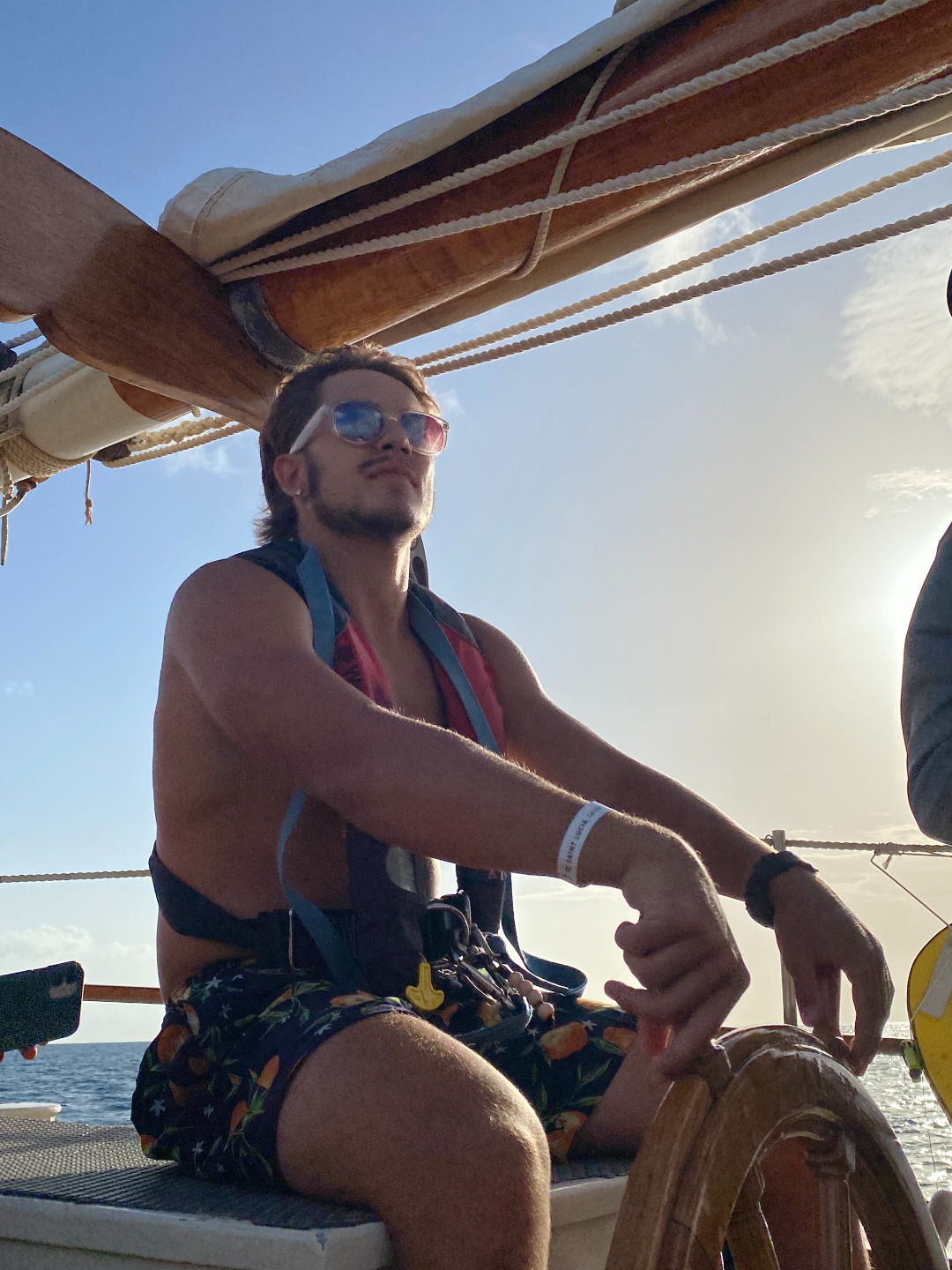 Good morning to our last day at the pitons. Greeted with a rainbow, had an early wake up at 5:30 to have a sunrise snorkel. Eels, lionfish, and squid were spotted as we swam through masses of sargassum. After an oatmeal bar breakfast, we split up into dive teams. Group one did fish id, and group two did deep dive, both at the piton dive site. In group one, Maria was super excited spotting fish, and Joel was persistent in making bubble rings. Thanks to Peter and his crew! After a fantastic lunch med bowl, we sailed over to Rodney Bay. Broke up into watch teams for one-hour shifts and spotted so many rainbows. Docking was a breeze thanks to Jaden and his great dance moves and line catching. Then a burger dinner was served, and afterward, we were able to put the floodlights on without the fear of bugs swarming us. Back to the dock!