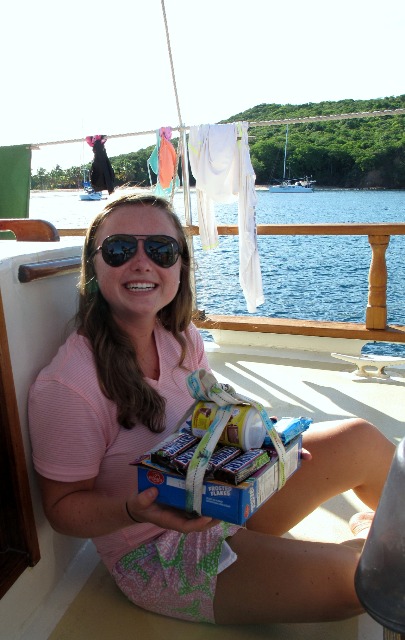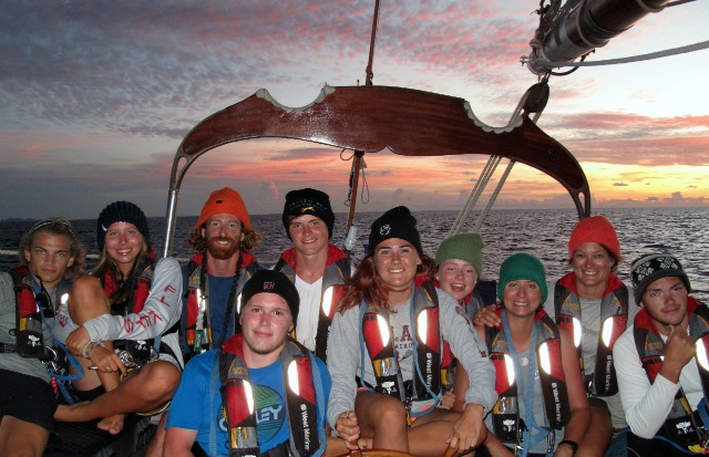 It was a beautiful morning in the Tobago Cays this morning. It was about 85 degrees and sunny, like every other fantastic day in the Caribbean. We had a breakfast of eggs and bacon. Before it was time to leave the Cays, we had a marine biology class and learned about many different amazing marine organisms. After class, we started preparing the vessel for passage. Passage prep generally consists of clearing the deck of any personal belongings and putting up the sails. After we left the bay, we raised the boat’s two jibs and started our passage to Bequia. On our way to Bequia, we spotted a pod of pilot whales swimming near the boat. There were about 20 of them in total. When we were almost at Bequia, we celebrated Eliza’s 18th birthday with cheesecake and, of course, singing Happy Birthday on deck. We arrived in Bequia in the dark and did a quick cleaning of Ocean Star, followed by some highly anticipated sleep. It was another incredible day in the gorgeous Caribbean for the crew of Ocean Star.