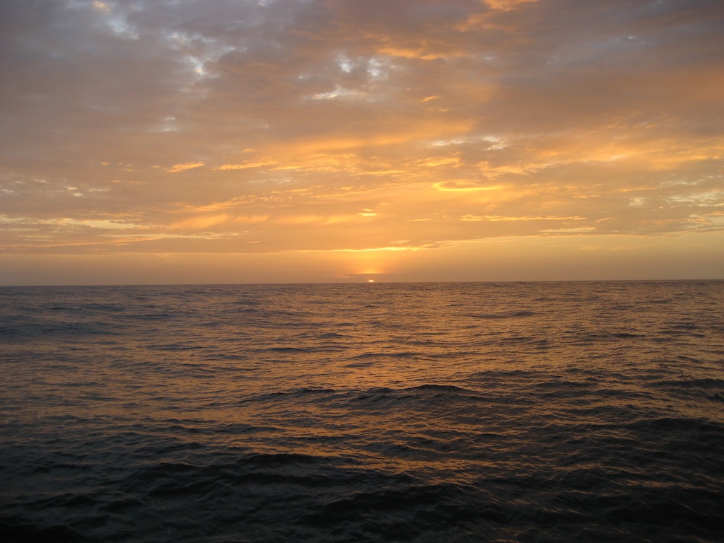Even when the days seem to blend together while on the passage, every day is a new adventure. Today we had a couple of classes, learning navigation with Kris, Marine Law with Sam, and talking about the Myers Briggs test with Britt and Leah. We had deck showers in the afternoon, which are amazingly refreshing in this heat. We have hit the doldrums, so the wind has been less than ideal for sailing, much less, so we have been motoring a good bit. Although, we have been able to put up the tarps over the chart house, creating what I like to call Camp Argo because it feels like we are in a giant fort. Tonight, while the cleanup routine was underway, a couple of dolphins swam by as the sun was setting. It was a great reminder of how amazing this trip really is. Especially because you have not seen a sunset until you have seen one at sea with nothing but water as far as you can see in every direction. My watch team had the 8 pm – 12 am watch tonight. The stars were so bright, and off the stern, we saw tons of bioluminescent jellies. The flashes of light looked like fireworks underwater! Only a couple more days, and we will cross the equator and arrive in the Galapagos! To all my family and friends, I miss you and can’t wait to share all of our amazing stories and pictures with you.