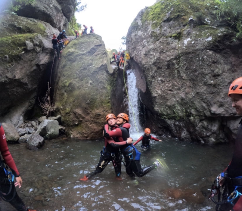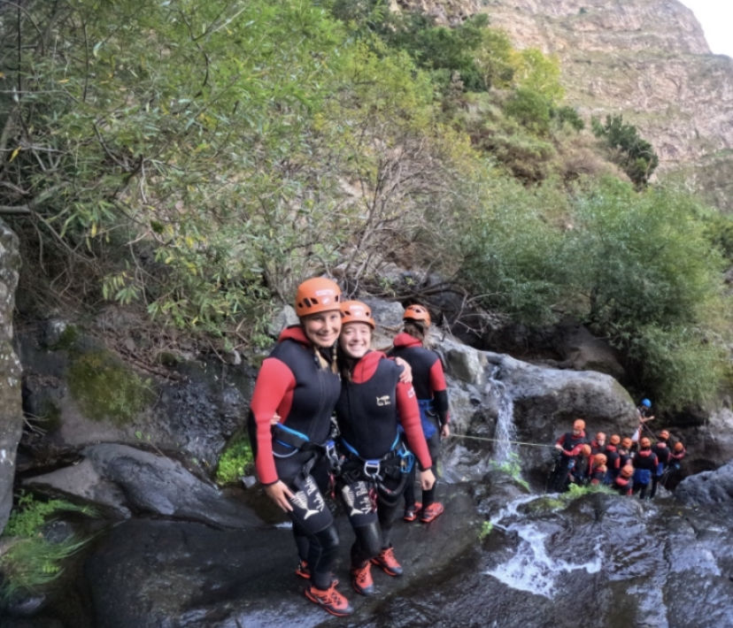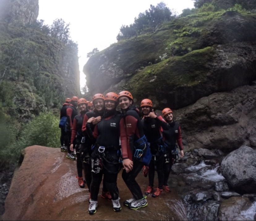 I woke up the crew this morning in Madeira, and we fuelled up for our big day with some delicious frittatas made by Gabby, Will, and Liam. Everyone got their bags ready, PB and Js packed, and put on our bathing suits in preparation for our most exciting adventure yet: Canyoning!!! It was a new experience for everyone, and you could feel the excitement as everyone got their wetsuits and boots on at the top of a mountain. We walked about 20 minutes to the first waterfall and were instructed on how to repel ourselves downward. I was so excited I jumped up to be the first one to go. It was crazy, scary, and soooo awesome!! I landed right in the freezing cold water, which actually felt good after the trek up there. Each waterfall led downward to another even cooler waterfall. As we became more comfortable, we were able to jump right off the rocks into the little pools of water, and other areas were slippery enough that we could slide down them like a water slide. Everyone was having the best time, and it was honestly the coolest thing Ive ever done. At the very end, we reached a huge rock, and all jumped or slid down the 6-meter drop. It was so much fun for all of us to experience something new and unique together, as well as support and cheer each other on through it all.