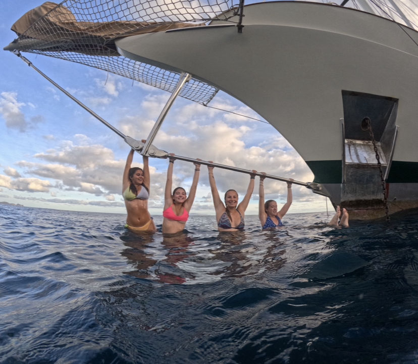On the ride back, I took a nice nap on Gretatata, and we all got dropped off on shore to grab snacks, pizza, and some gifts for our Secret Santa. I was happy to catch up with my sister, Bella :). After putting away the provisioned food that Stich and Sean had spent the morning collecting, we had a big ocean shower party. It was a lot of fun watching Daisy, Xavi, and Rob backflip off the bowsprit and practice their death dives. I love ocean showers almost as much as Caroline, and thats A LOT. After a yummy dinner and squeeze, the argonauts are now getting ready for marine bio. Best day everrrr!!!!