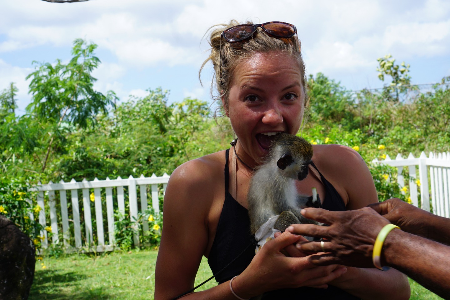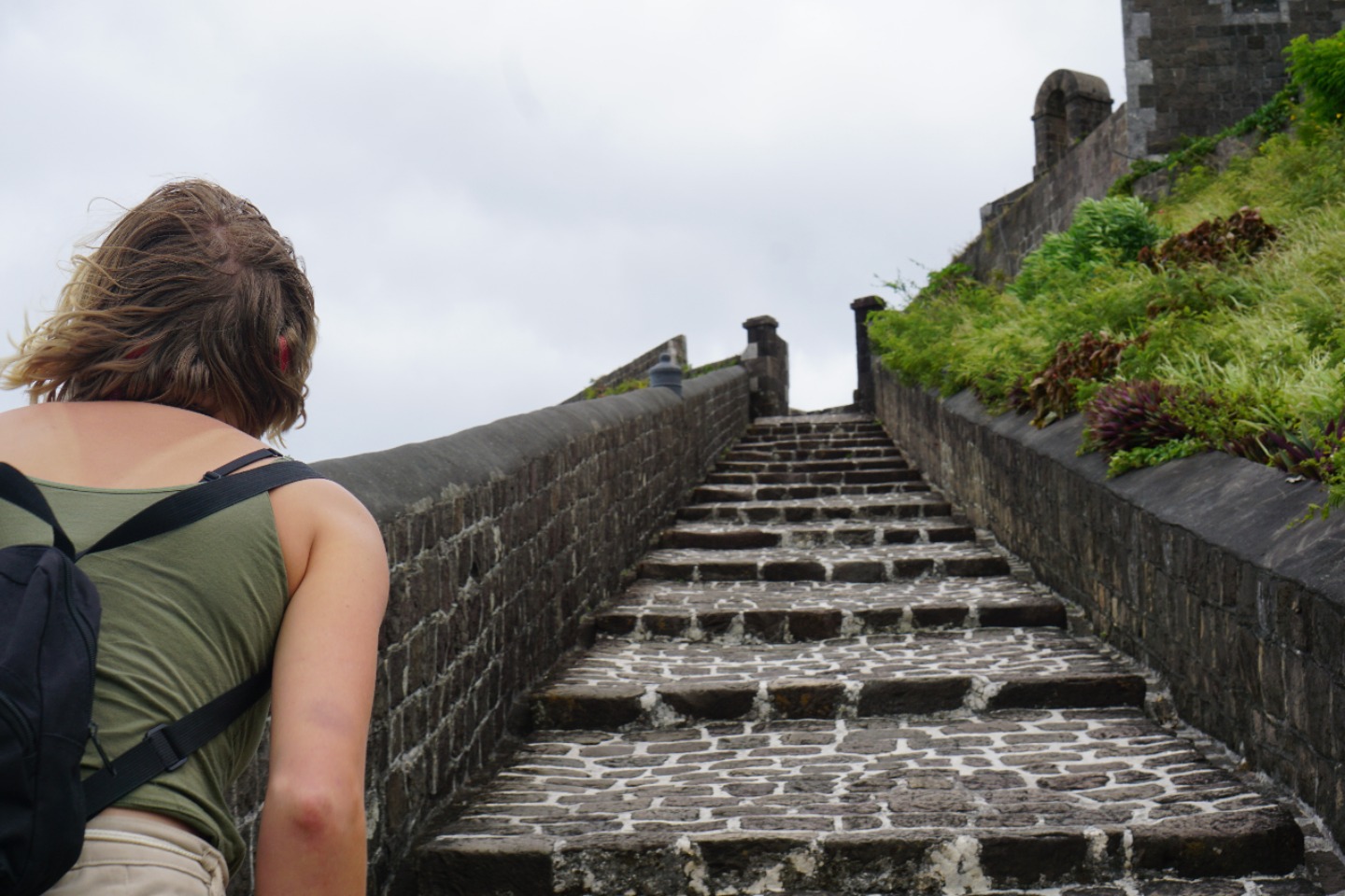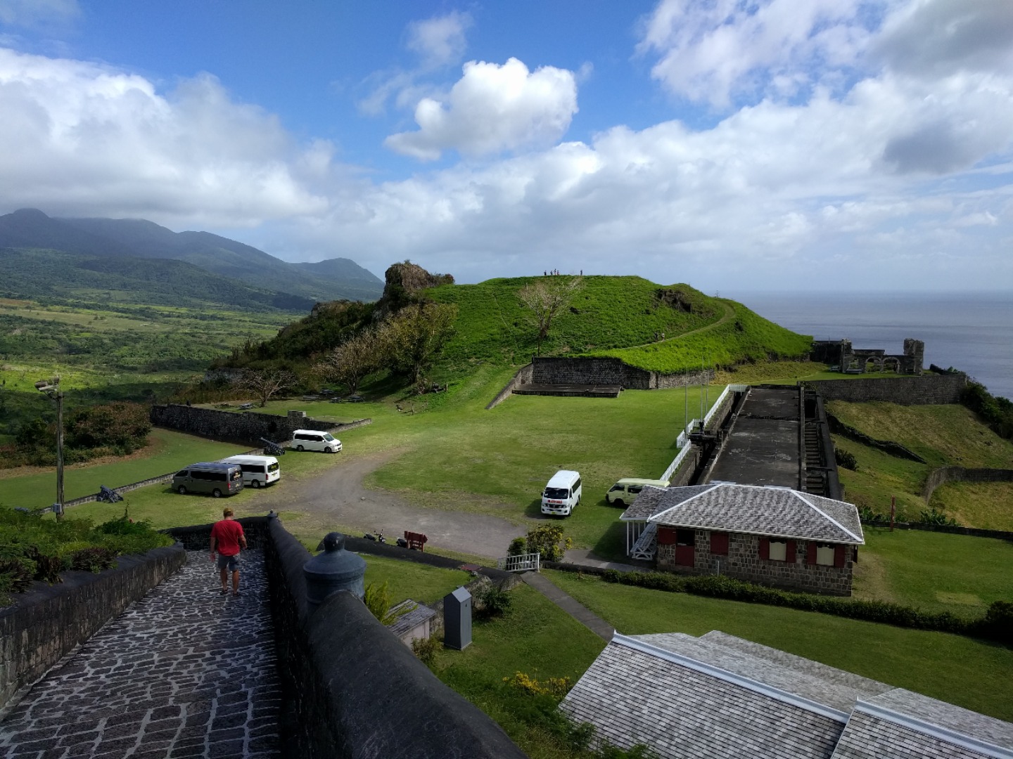 Next, we drove up to Fort Brimstone. It was an old English fort that featured elaborate masonry, several large cannons, and incredible views of the island. We spent plenty of time exploring the old fort and taking in the breathtaking views. A bit of yoga was squeezed in at the top of the monkey hill at the fortress. We continued to drive around the island, stopping at a couple of other vistas along the way and munching on some fresh coconut cookies.