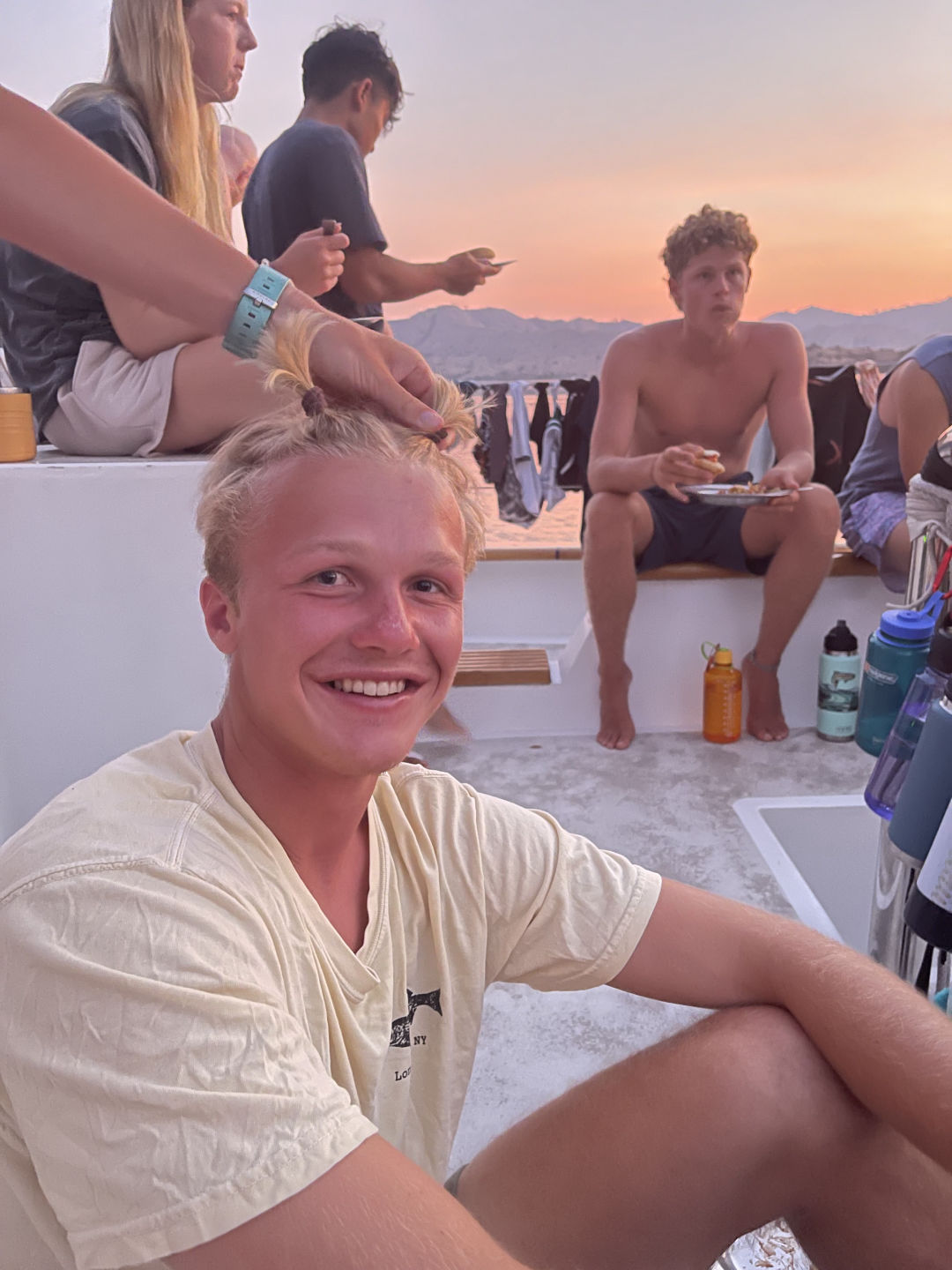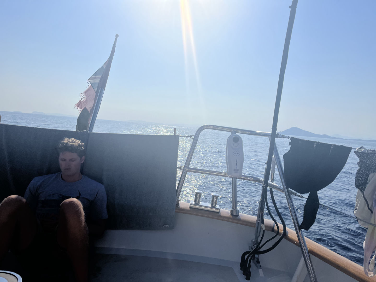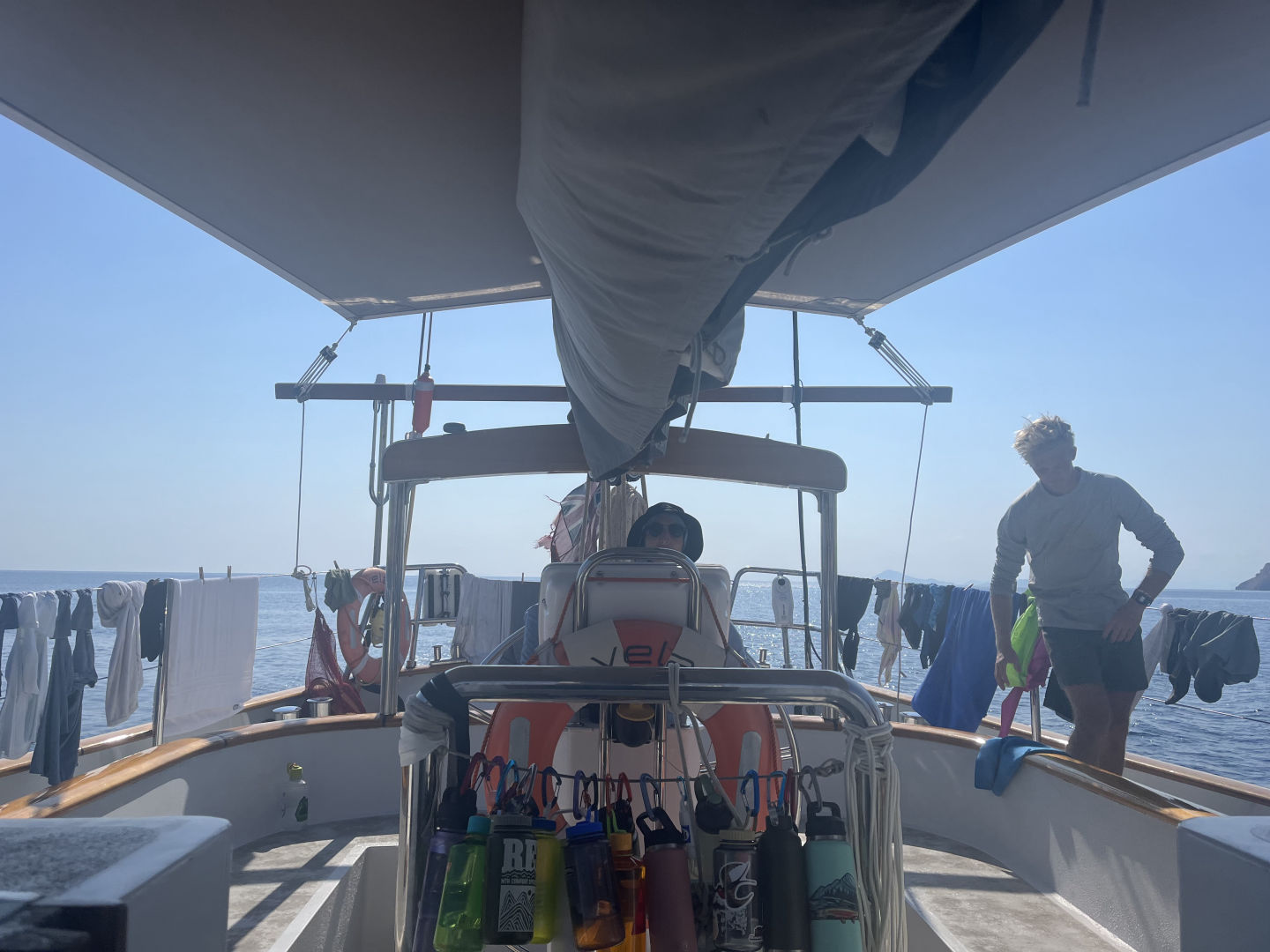At approximately 6:30 a.m., the bacon set off the fire alarm. We all jumped out of bed like it was Christmas morning. Everyone grabbed their lifevests and emergency bags, and Finn even brought a bag of canned beans! No need to fret about a fire, though. We got an A+ from Captain Tom on our fire drill. After everyone was settled, we enjoyed a view of the morning sun over Lawa Darat, where we had just anchored. It’s so cool to wake up each day, walk up the companionway, and have a completely new landscape. We enjoyed breakfast tacos made with love by Lena. I really liked the fresh avocado in them.