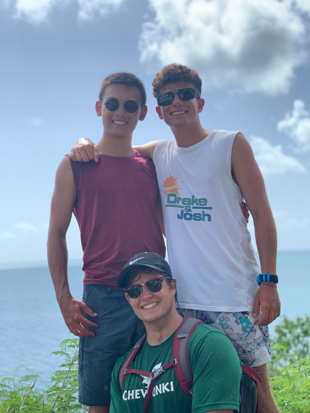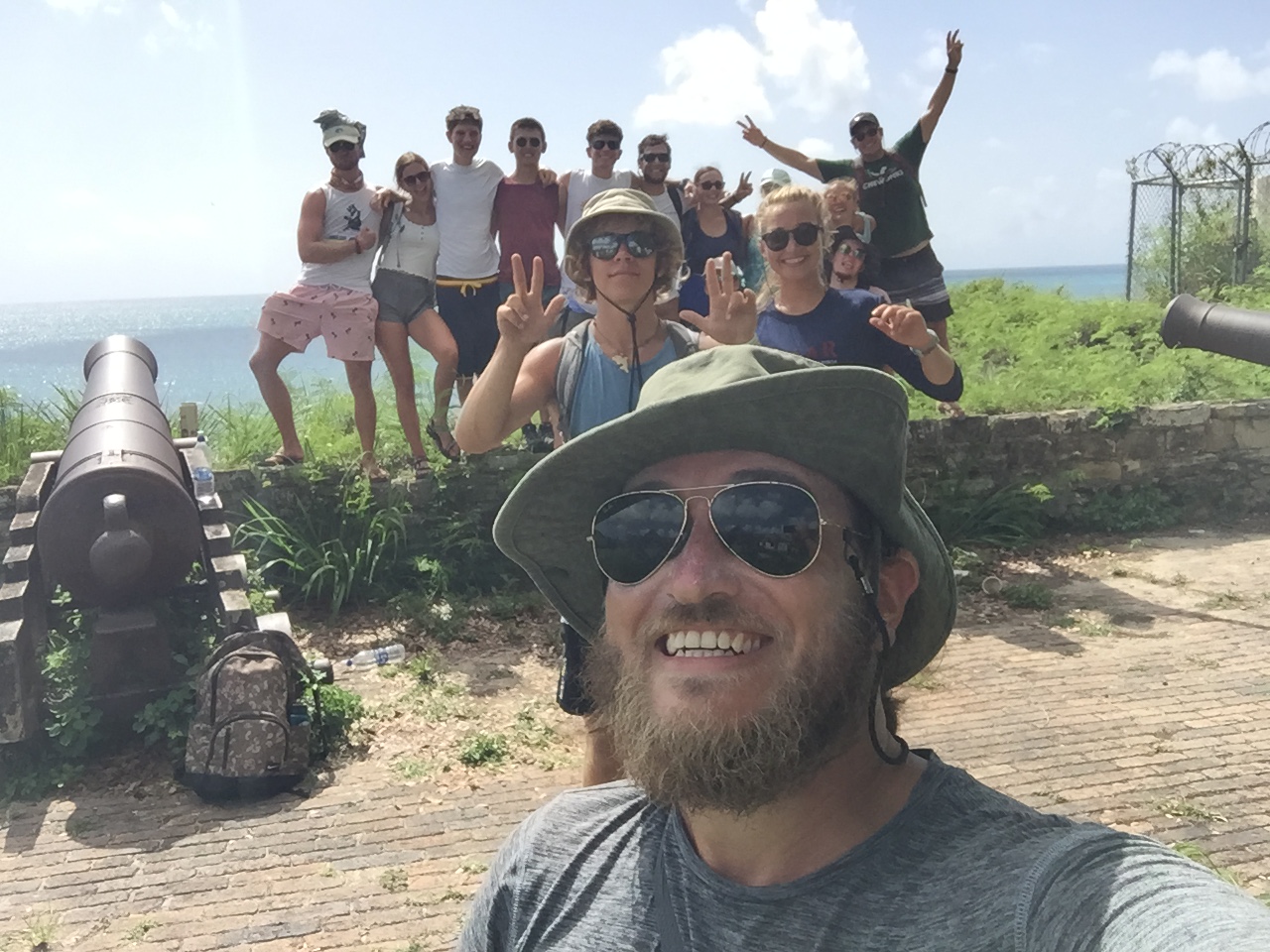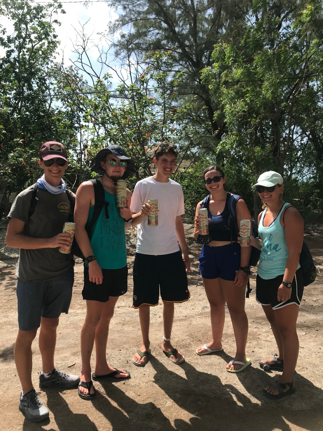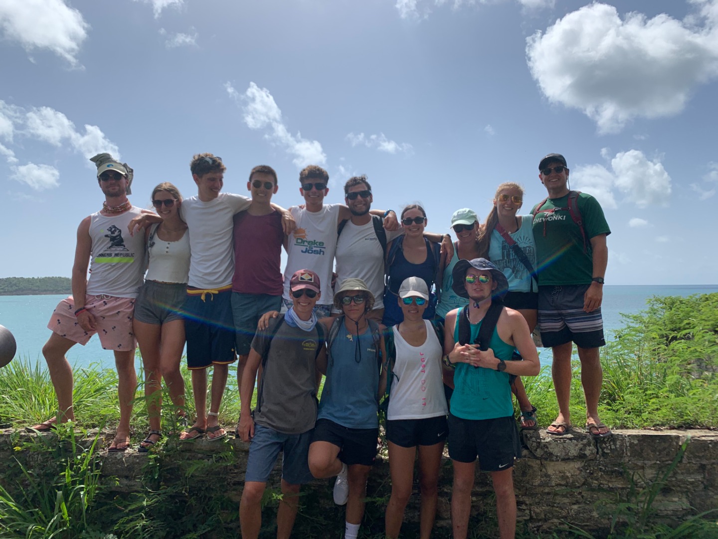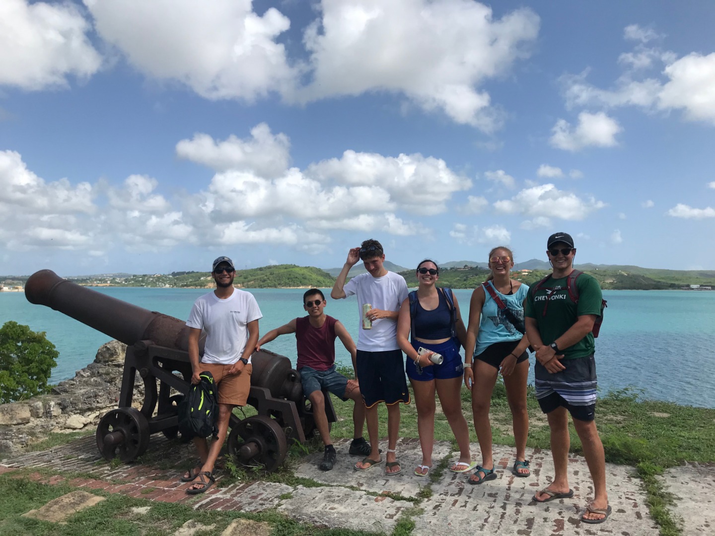 Lunch was a delicious bacon-grilled cheese and tomato soup. Despite Dylan’s humbleness, lunch was incredibly delicious, so much so he was talked into changing his next meal plan to include this again. With full stomachs, we headed to land for a hike to Fort James. Although we were warned about the heat, the two p.m. sun in Antigua was no joke. We weren’t even halfway to the Fort when Ethan and Tom declared their empty water bottles. With overwhelming vitality and, in my opinion, slight craziness, Dylan, Tom, Ian, and Sydnei decided to sprint towards our destination. They reappeared in front of a small bar chugging some life-saving Arizona tea. When we thought Fort James was a scam made up by our boat mom, Ash, stone walls and canons appeared before our eyes. Instantly, Ian adapts monkey-like abilities and climbed on walls, trees, and cliffs. The stunning view at the fort made our hour-long trip entirely worthwhile, and the bond within our group got stronger. On our way back, the weather started to cool off. The energy of our group was so uplifting that locals exclaimed Cardi B’s got nothing on us. We then went to a grocery store where we stocked up on groceries, snacks, and miscellaneous supplies.