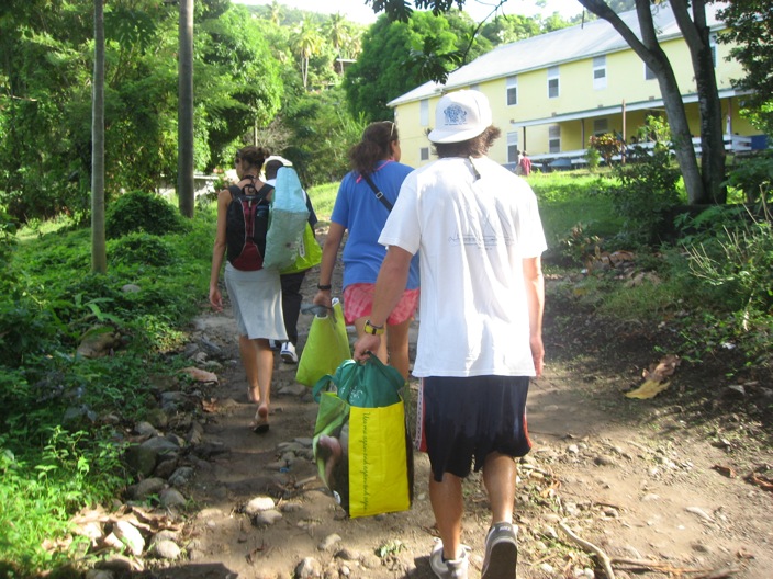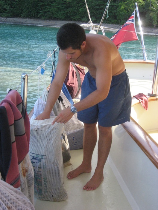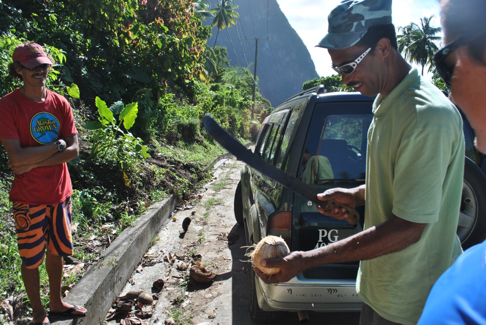 When you think of a rasta, you normally think of the red, yellow, black, and red stripes, Bob Marley, and dreads. You don’t think of them as being incredibly artistic and extremely nice. Here on St Lucia, they gather fruit in the jungle and carve decorations out of calabash. They also stop on the side of the road to help you open a coconut with the machete they have in the back of their car or to point out the best fruit trees, which is what they did when we walked around the jungle of St Lucia. Today was one of my favorite days aboard Argo, filled with sunshine, diving, hiking, and freshly picked fruit. Not having dove yesterday, four of us got to ride partially around the island to help collect sediment cores but moreover dive around the reef, looking at butterflyfish, brain coral, and stinging feather hydroid (trust me, it hurts to get too close!). After lunch, it was time to explore the jungle, trekking up a hill that, when you’ve only walked about 100ft in the past two weeks, felt like miles. We found oranges, both sweet and sour, coconuts, cocoa pods, bananas, and an incredible art studio, not to mention the wonderful locals. We also got our first major provision since the crossing and are stocked up on fresh vegetables, meat, and, most importantly, cereal. It being the first day of Hanukkah, we celebrated by making a menorah out of tin foil and lighting the first candle. With the sun shining, today turned into one of those days where you smile so much that your mouth hurts when you try to stop.