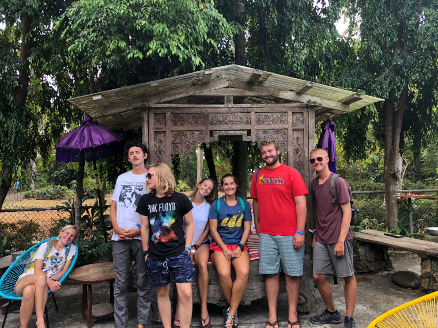 I spent a few minutes enjoying the beautiful sunrise coming over the land before I woke the rest of the crew this morning with my “Wake Up Happy” playlist. Though the movement was slow from below up to deck for breakfast, clean-up was performed at lightning speed to enjoy our first full day in the Pacific! Once supplies were gathered and all were ready, we dinghied into shore to enjoy the city.