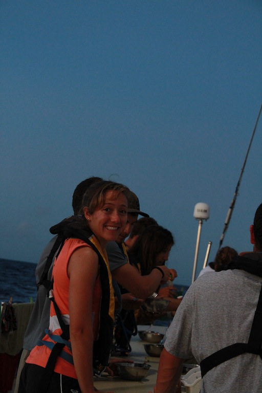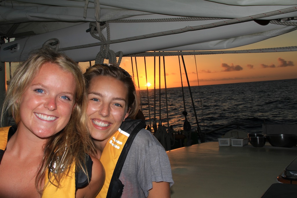 Today was a day full of excitement. First thing in the morning, as soon as the sun began to rise, our very own student Jack caught a tuna while on his watch team shift. We cooked this glorious fish to have some of the freshest tuna any of us have ever tasted for dinner. We have been on passage for three days now, and everyone is looking forward to their fire hose shower after the heat of the South Pacific. The shower was very refreshing. We then proceeded to look at a sunset over the ocean with no land in sight on any side. After a unique green flash sunset, we were able to witness the stars of the night. It looked as though we were covered in a dome full of bright lights. I personally have never seen so many stars at once before. We are very excited to arrive in the harbor of Rarotonga on Saturday morning!