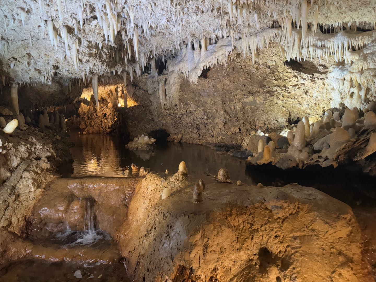 The tram began to roll, and we sped through the winding path below the Earth into the most beautiful stalactite formations I have ever seen. We stopped at some incredible views, including the great hall, an over 50ft tall room full of stalactites and waterfalls, absolutely breathtaking. Another stop was Mirror Pond, a pool of water that looked like it could maybe be the height of the bottom of your shoe but was, in fact, over 4 feet deep! We stopped at a waterfall shortly down the path, where we reached out to touch the underground flowing water.