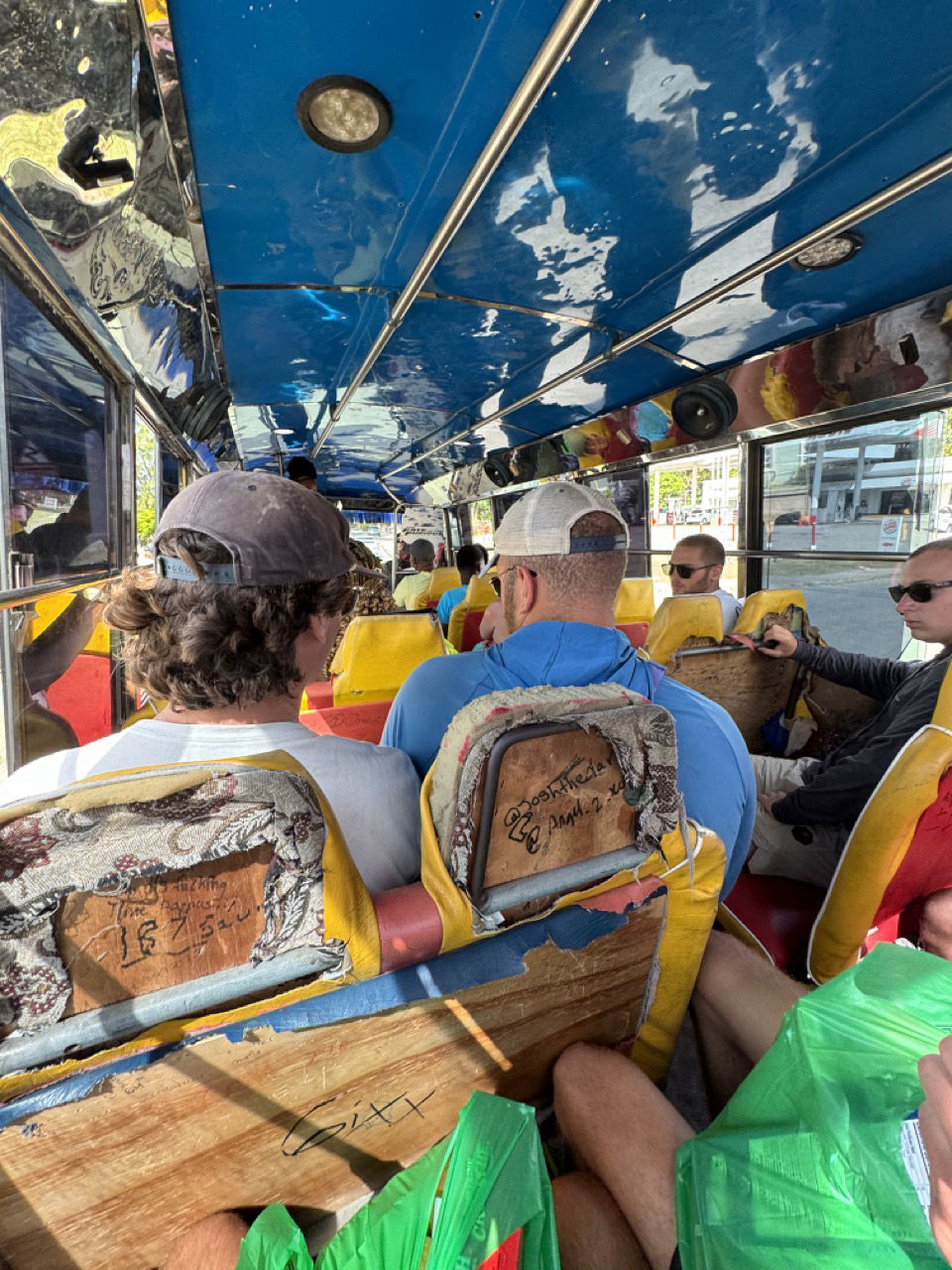 After a very eventful night last night, we all had an early wake-up call at 7 am. Around 7:20 am, we all found out we had an oceanography class before breakfast, which was a first for everyone. Shortly after that, we all headed up to breakfast at around 7:50 for Tom’s amazing blueberry muffin bake. After cleanup, we all headed out to the taxis at 9:20 to go to Harrison Caves. We all had an amazing time at the caves and got some amazing pictures to send home. While driving there and back, we drove the roads that were in the latest season of Outer Banks and got to see one of the houses/compounds that was in the show. Harrison’s caves were also the caves where the last episodes of outer banks were filmed. After the caves, we all had free time to roam the streets of Barbados and pick up some much-needed groceries. Tom, Nate, Benno, Kip, Charlton, and I all went to a beachside restaurant that had some amazing food and a sweet view. After lunch, we all hopped on the “bumping buses,” which are the public transportation options in Barbados. These buses are very interesting and consist of a straight-piped diesel engine with loudspeakers in them. We rode back to the boat on two different buses and then snorkeled around the marina for a couple of hours. While snorkeling, we started to gather some data for our group research project, which is how fish are attracted to music. So we put a speaker and phone in a dry bag and sent it down. The data gained today was that Smooth Trunkfish (which are very cute; look them up) really enjoy listening to Freebird by Lynyrd Skynyrd. After messing around underwater, we all came up with Tom’s absolutely amazing chicken parm. The squeeze question of the day, thought of by yours truly, was, “If you had 30 days to live, what are three things that must be done?”. A very notable answer to the question was being adopted into a tribe of gorillas and saving the chief from a cheetah attack. Overall, we all had a very fun day. DRIZZ out