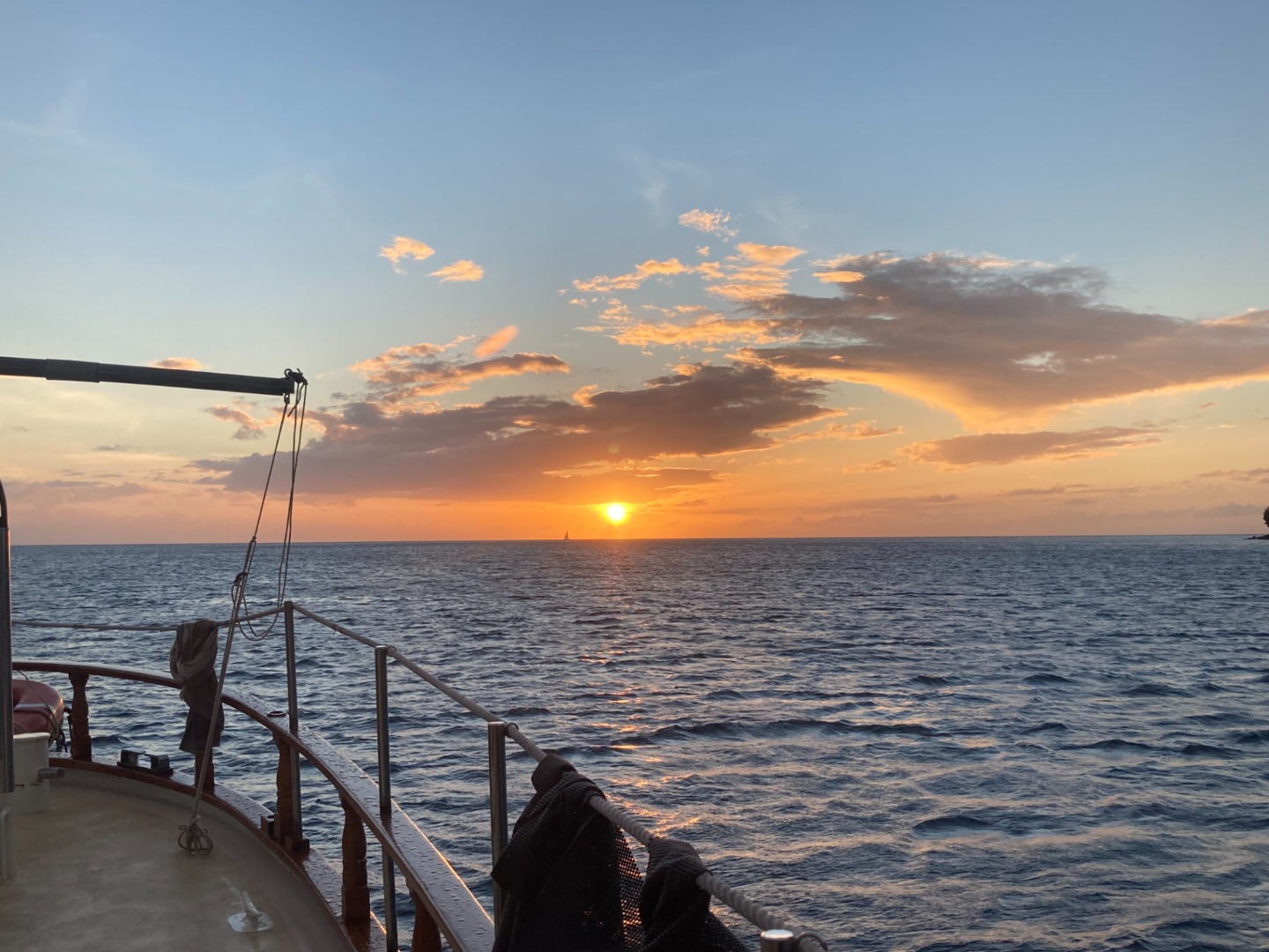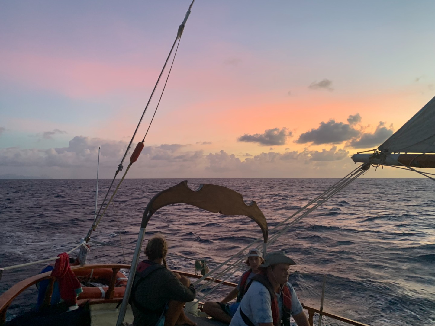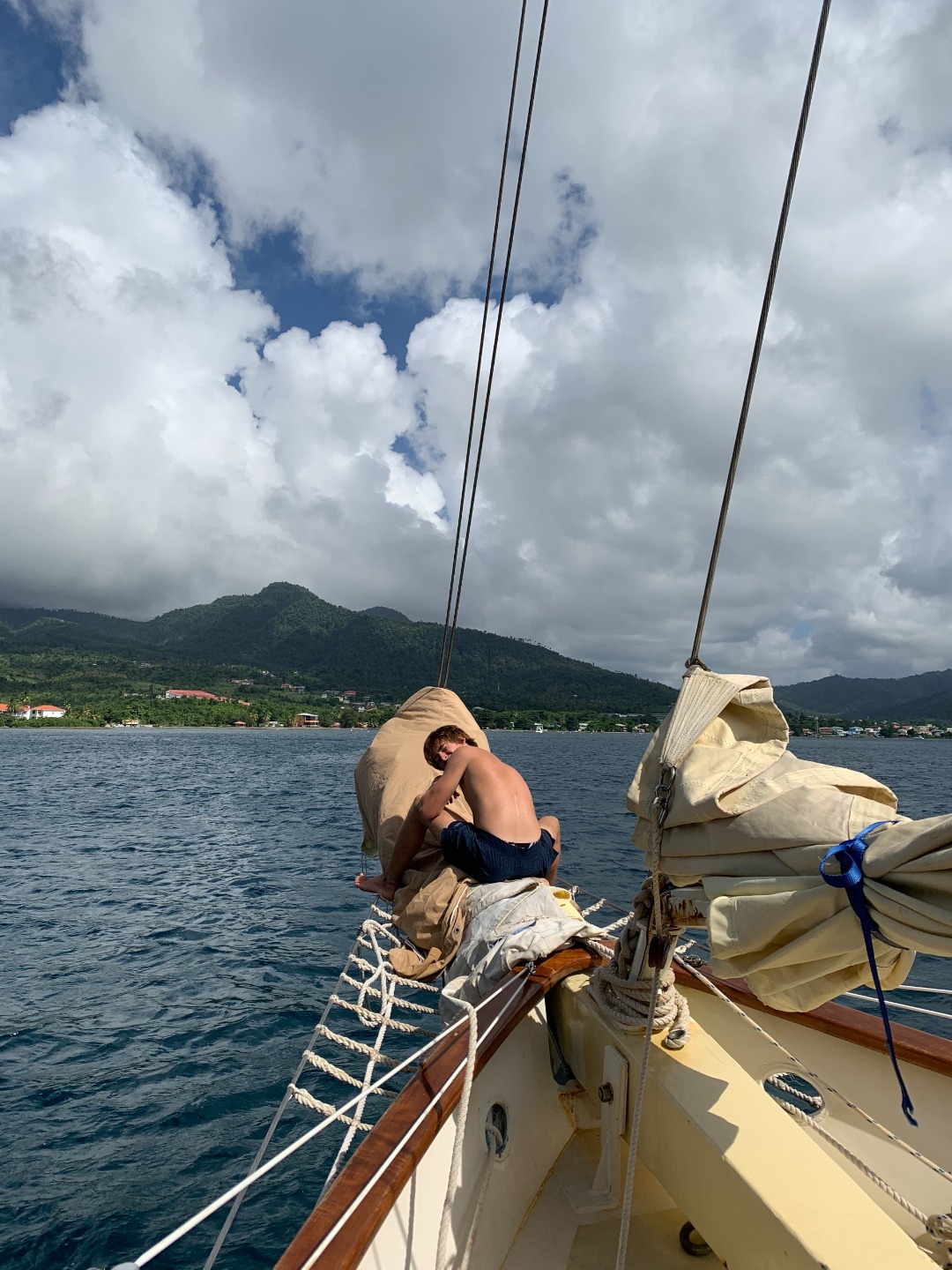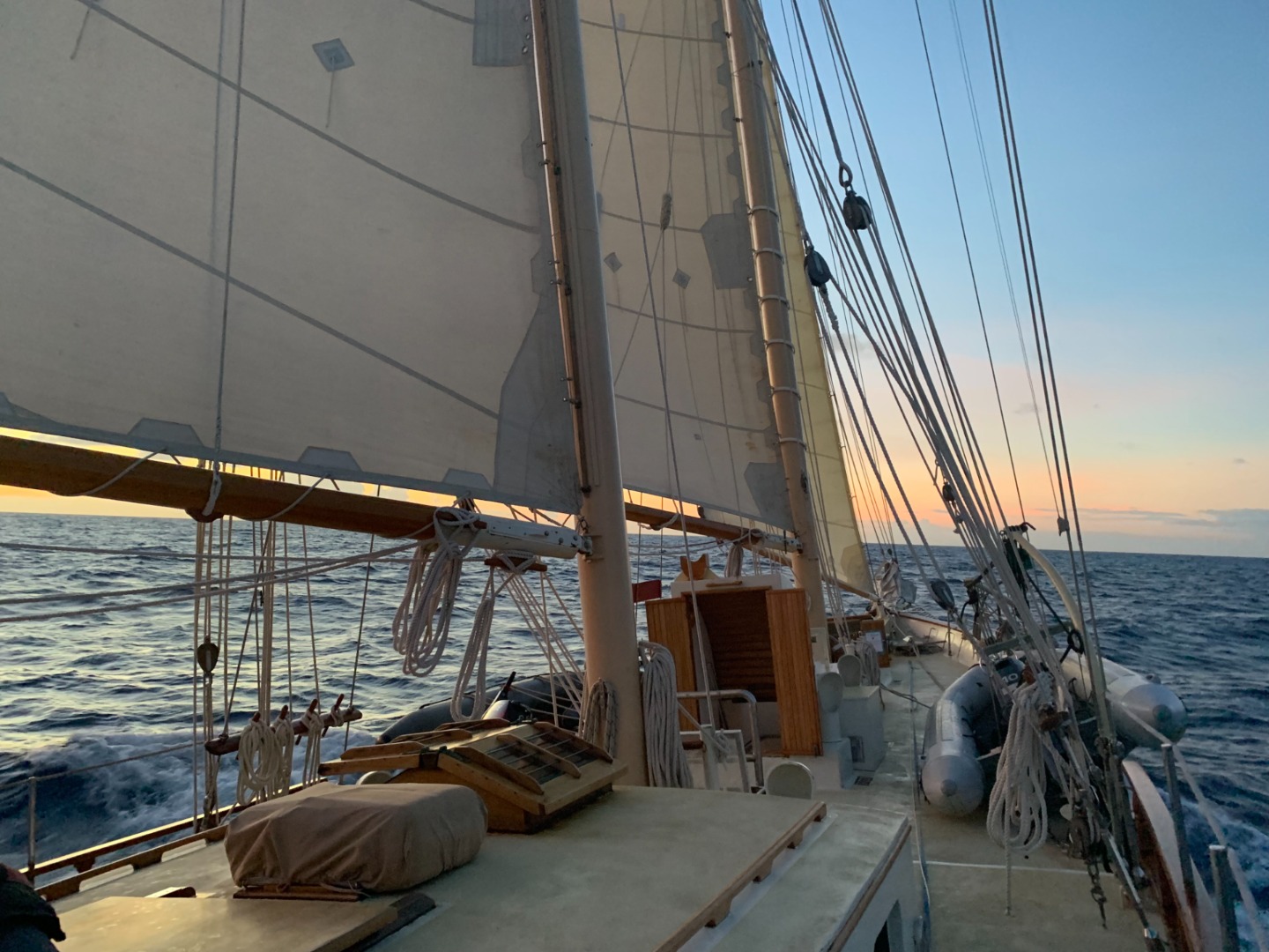 After watch teams 2 and 3 put the sails down and anchored our beautiful O Star, we all got to sleep until Lucy, Steph, and Quinn blessed us with some bomb sandwiches. We then put the boat to bed (sail covers on, coiled, and hang all lines…). We also had Marine Bio with Steph, learned about how awesome the deep ocean is, and watched an almost 2-hour long video about our Rescue diving certification! (I personally prefer Ridley Scott and Wes Anderson, but thanks for getting us certified, Ash). After preparing our Rescue knowledge reviews, I made Logan watch the beginning of Django Unchained jejej and, now that we are done with dinner clean up, and I am almost done with the blog. We are about to watch Pulp Fiction on the Saloon TV. Currently having the best day of my life, and it’s only getting better!!!!!
