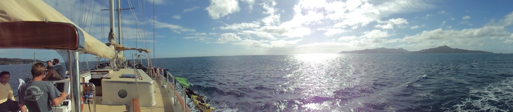 We woke up on the island of Raiatea, and the Open Water scuba divers immediately after breakfast completed their last qualification dive to get their Open Water Certification. After the cold, wet ride back, we got all the lines and the boat ready to motor to our new anchorage. After the motor through the lagoon was over, some of us decided to go for a run during our shore time. The next step for all of the scuba divers is to achieve our Advanced Open Water Certificate; this will be completed by the end of the trip. The last six members of the crew are coming in tomorrow morning, and we cannot wait to meet them. Also, we got our marine biology tests back, and everyone did very well.