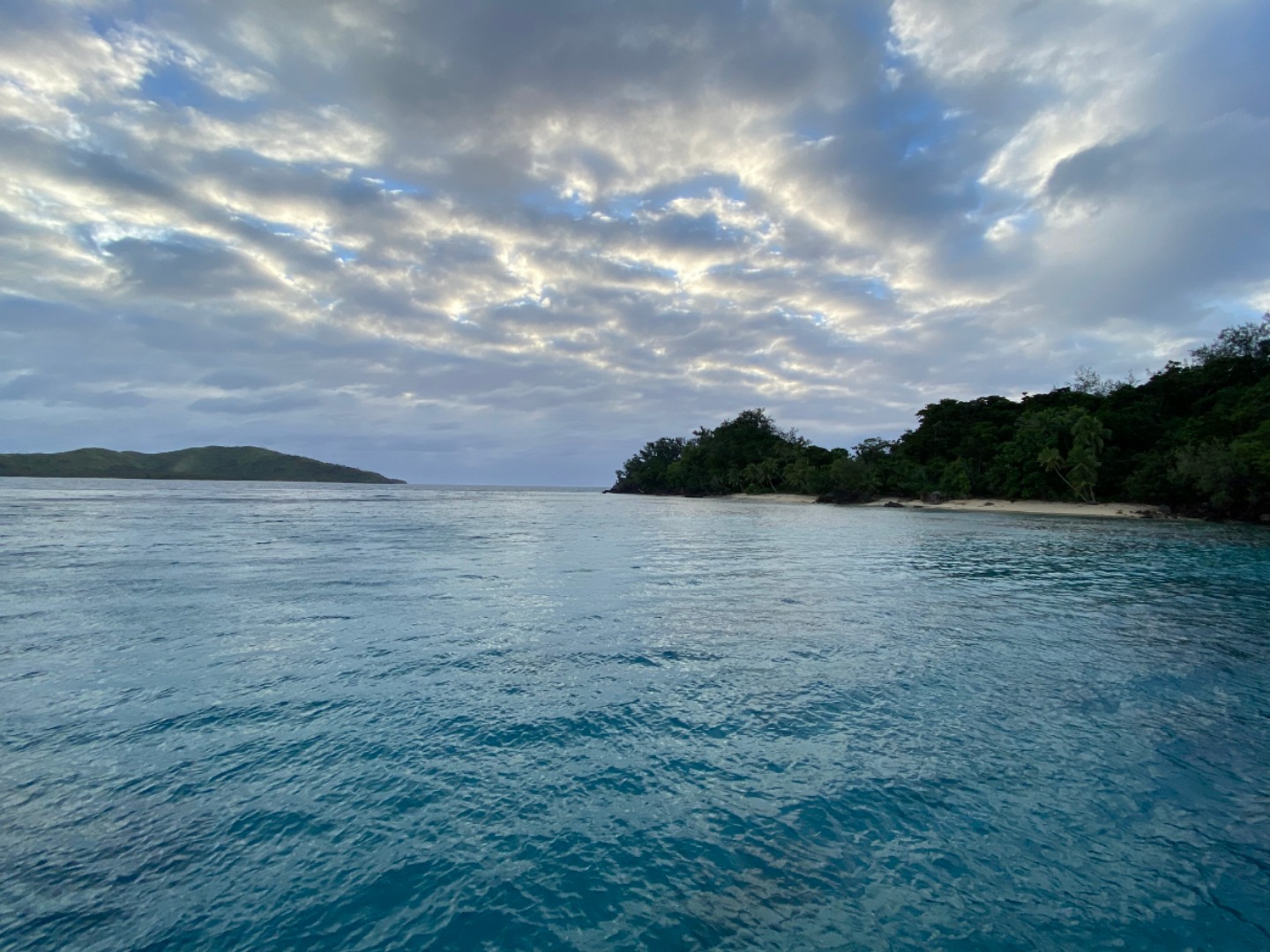 The island of Vuro Levu itself, along with the beach where we first had to swim ashore.
