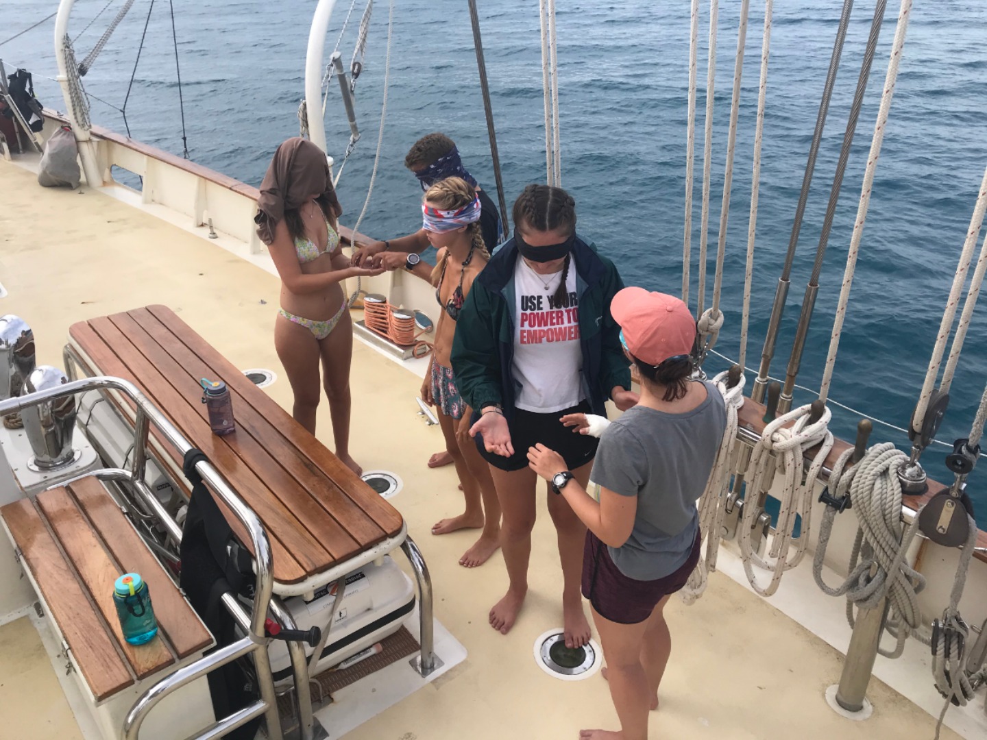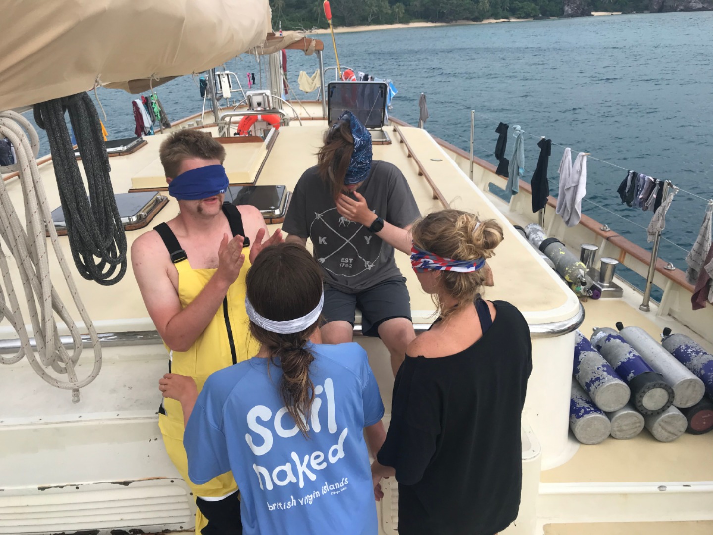This scavenger hunt was not limited to Argo, however. The crew was split into multiple teams, and each progressed through various challenges to reach the end of the trials. The first trial involved arranging your teammates in order based on the time of the year they were born, except while blindfolded and not able to speak. The second challenge had the teams free-dive 25 feet down the anchor chain to find the next clue attached to one of the metal chain links.