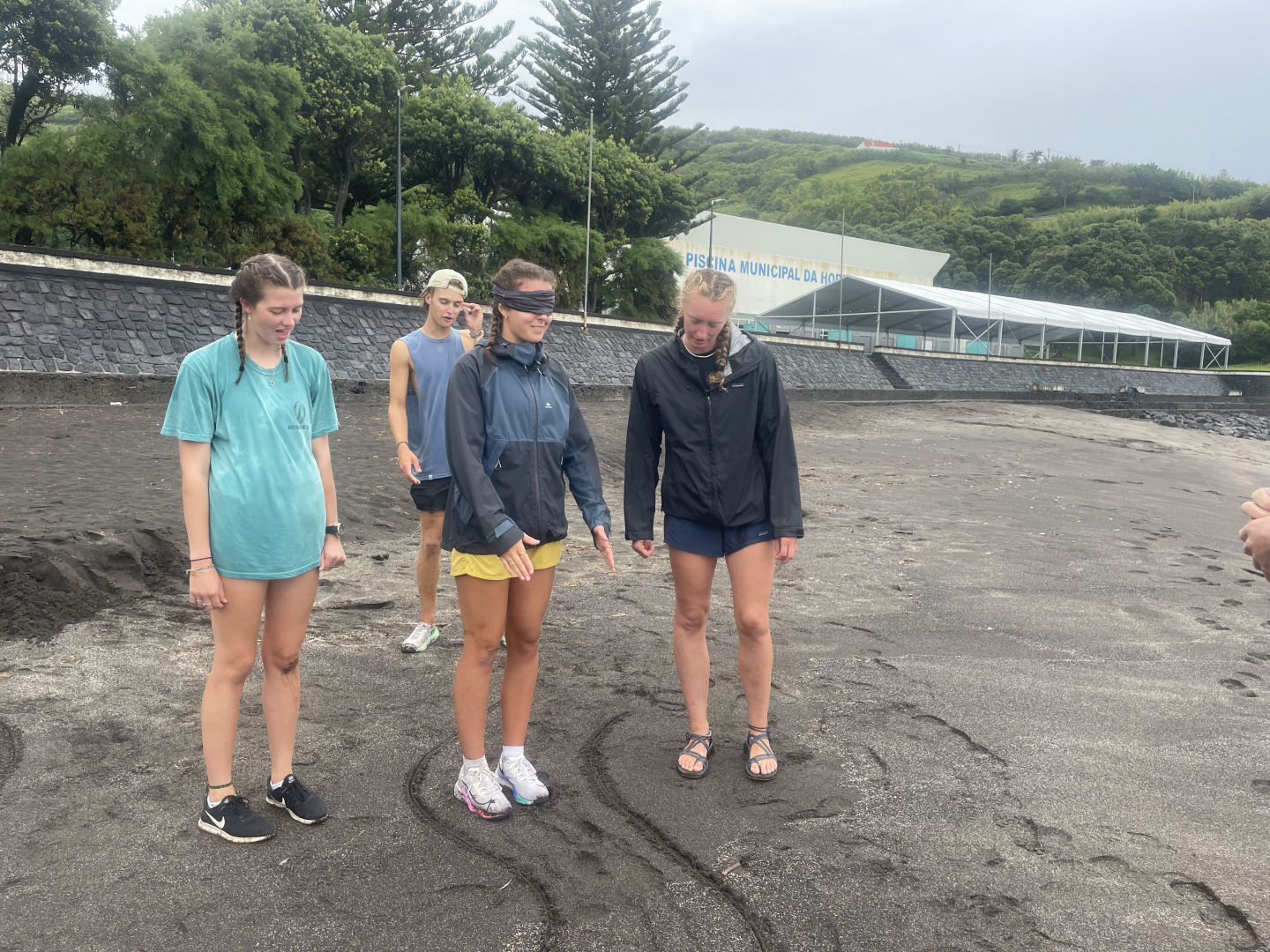 You would think that crossing the Atlantic would be the biggest test we could give the bonds of the watch teams, but you’d be wrong. The students had their biggest hurdle yet today; the leadership challenge course. Brought to you by the chaotic brain of Gabe, the students awoke today to Calum’s soothing voice saying to get ready, get hyped, and get your foulie jacket on, as it is raining. After a breakfast of yogurt and granola, the students started their walk to the park, where all of the craziness and shenanigans would begin. For the first part of the course, the watch teams competed in a three-way tag game and had to find special items to gain points. Those special items were hidden with Claire, Phoebe, and myself. Phoebe climbed up a tree with her CPR dummy head, I crawled into a cave with my type 1 PFD, and Claire climbed down into an empty community pool with the ship’s bell. Once Gabe explained the rules, they were off! Sprinting in all directions, hunt for the items while avoiding the team that could tag them. After 30 minutes of absolute chaos, including people climbing trees, slipping over rocks, swimming in the ocean, and laughing their butts off, watch team 2 become victorious in points-although the bell was lost to the ocean (big sad).