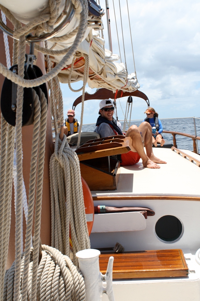 When I first came onto this trip, I was not sure exactly what to expect. I was excited at the prospect of doing something new and exciting, combining adventure with hard work and fun. I wanted this to be something special for me, a defining trip at an important time in my life. I hope to learn a lot but, more importantly, grow as a person. Even though it is still relatively early, it is fair to say that I have already been affected. I have been forced to pay closer attention to myself, my actions, and the others I am with. What I do affects the people around me in a way that is different than what I am used to. It is easy for me to get distracted and overstimulated when I am back home. Here, everything is much simpler, a feeling that makes me think differently. Yesterday, we motored from Great Dog in BVI to Nevis, which was a twenty-four-hour passage. We were briefed on everything from basic safety to simple boat checks and seasickness.