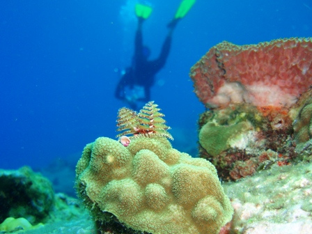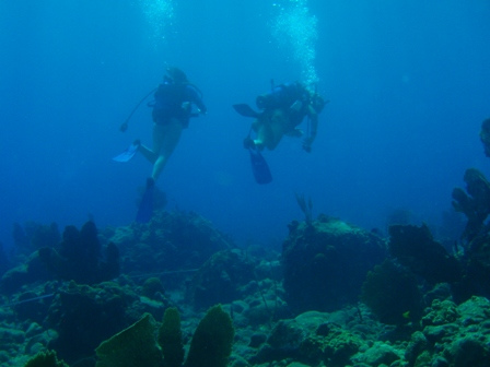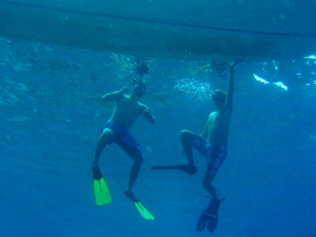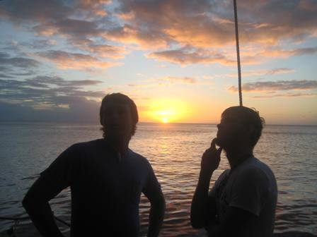 This morning, we completed our first Reef Check survey at the famous “Superman’s Flight” dive site at the base of the Petit Piton, a stone’s throw from our anchorage. After a wild morning of counting fish, invertebrates, and substrate types, we returned to Ocean Star for lunch. Following lunch, we headed back out for another Reef Check survey at “Grand Caille” at the base of a 70ft cliff that was littered with caves. Having completed our mission, the group came back and had dinner just after sunset, which produced a nice green flash. To finish the day, we all sat down to watch White Squall for our Student Leadership Development class.