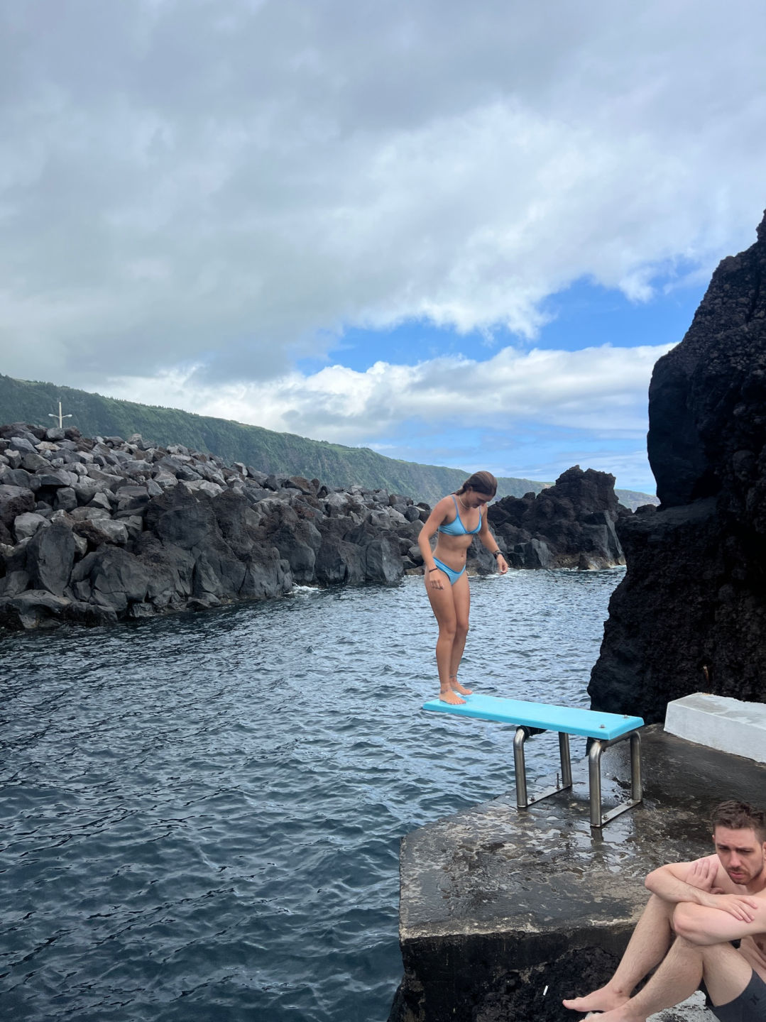 (9) You finally arrive at the Varadouro natural swimming pools to meet up with your friends, and your mind is blown. The scenery is like nothing you have ever seen, with hidden turquoise pools woven into black lava rock. You all take turns jumping off the next highest cliff, splashing into the chilly waters below. You take a break to get coffee and a snack to discover that more friends will join you later. Go to paragraph 12 to meet them!