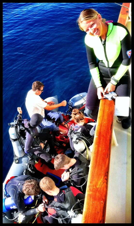 Today kicked off before everyone was actually awake when we dropped anchor off the coast of Sardegna around four in the morning. Watch teams kept an anchor watch until the morning wake-up happened for breakfast. Post breakfast, the deck was tidied up, and dive gear was brought out for what would be most of the shipmate’s very first open water dive. Shipmates had an early morning basic seamanship review session with Al for their exam later that night. Post review, the first group of divers got their gear on and shuttled out to the dive site for their morning dive. They returned a little colder and hungrier than when they left to a meal of pasta salad, which was quickly devoured and cleaned up. There was no wait after clean up, and the second set of divers were gearing up, getting themselves ready to go after waiting the necessary time after a meal, so one doesn’t get cramps, obviously. Dives for the day maxed out around 40 feet for around 25-30 minutes, which everyone was able to come back and put into their logbooks as their first open water dive. The afternoon was spent studying while dinner was being prepped, and the boat was once again prepped for the sail. Mexican dinner was devoured quickly by all the hungry mouths aboard, and everyone rushed down below to get the last-minute cram in before their exam. After the exam, which everyone hopefully passes, we will pull anchor and begin our journey to the mainland again to see the sights of Rome.