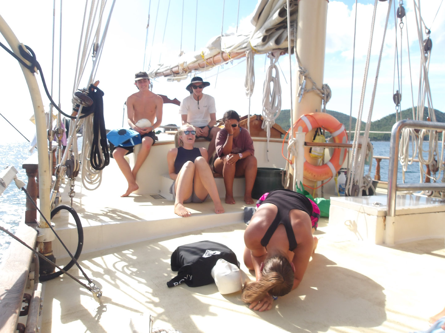 Today was filled with productivity as we opted to frontload some classes in order to leave extra time for other things later in the week! This morning, Hannah prepared bagels, yogurt, granola, and fruit from the Dominica fruit tour we did with SeaCat a few days ago. After breakfast, Ben taught marine bio, and I taught the last class of the NavMaster curriculum! NavMaster is quite a hard course, so it is exciting to be nearing review, and exam week is coming up. Later on in the day, the students continued the Emergency First Responder course with Ben. Although I was organizing exam paperwork in the chart house, it was fun to listen to everyone in the EFR course act out overly dramatized scenarios. I think everyone had a fun time- and for those who may not continue sailing or diving in the future after this trip, at least they got to work on their acting careers! Today made me remember how nice all the small things are as well- like scrubbing dishes in the dishy pit with friends, going for an afternoon swim, and taking a little nap.