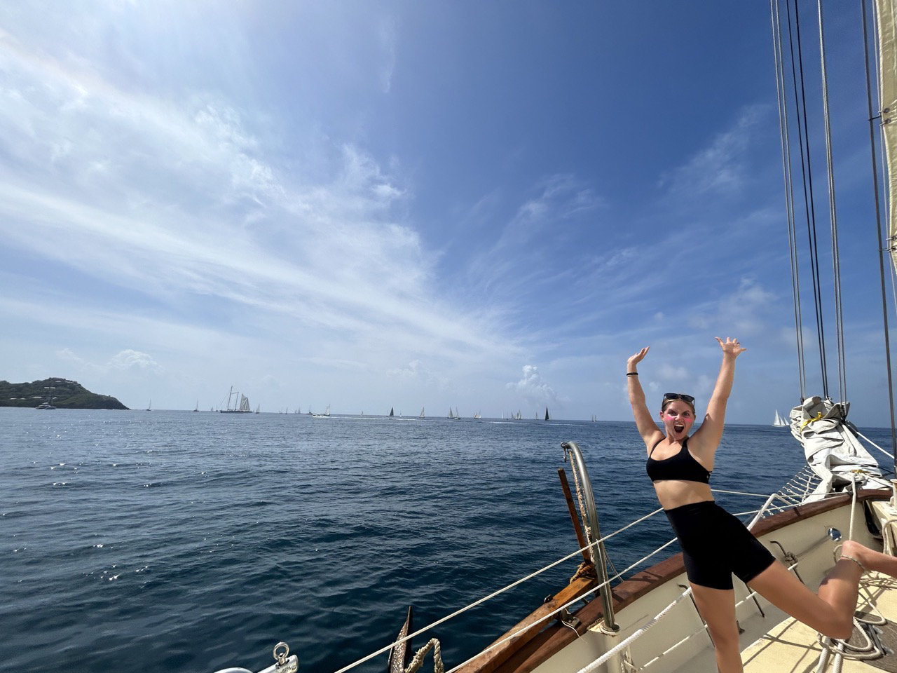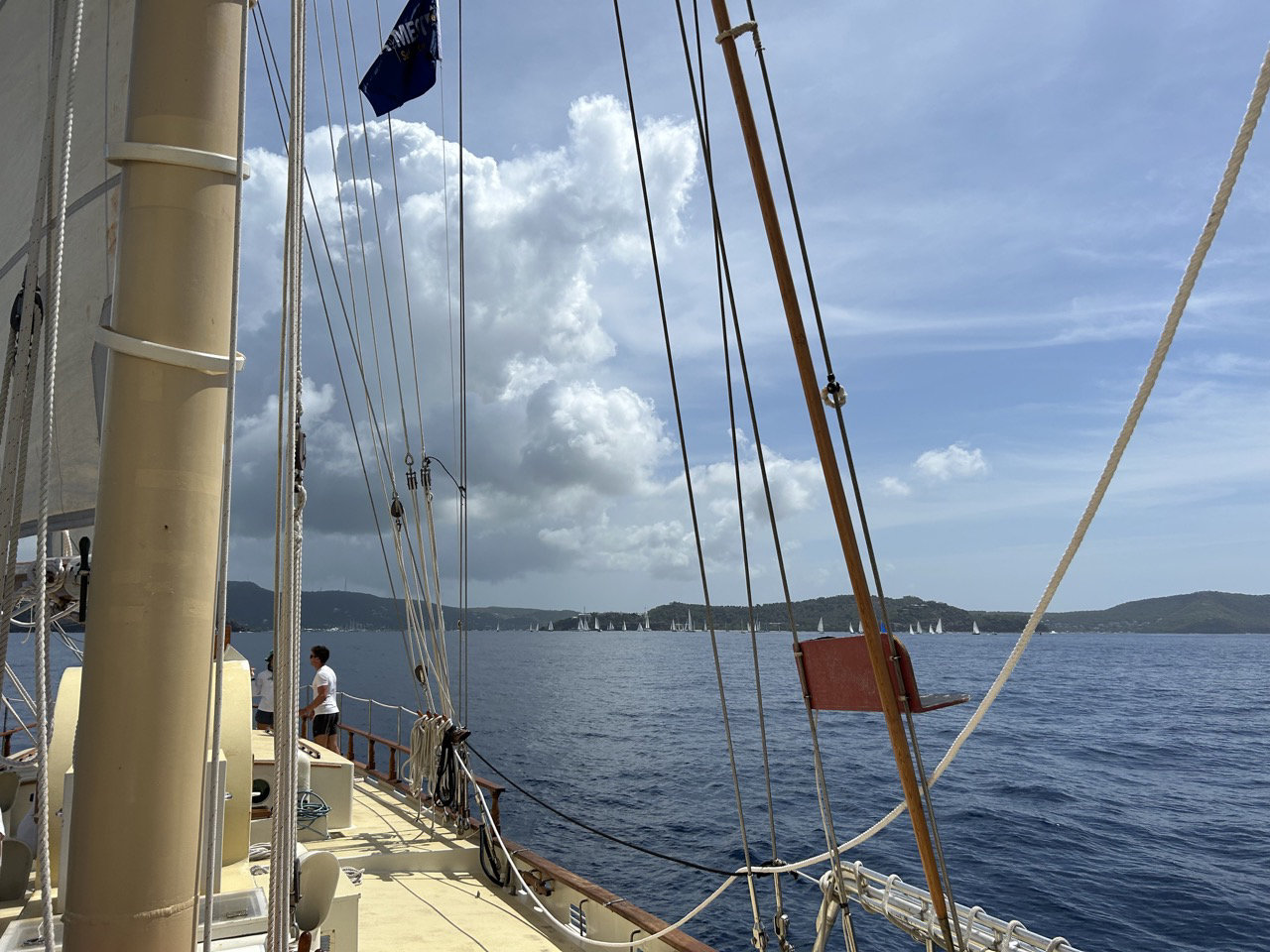 We had such a fun day for the second day of classics! Although the wind was pretty low, we pushed through and sailed part of the course. In between tacking and heaving, we hung out and watched the other boats. It was so nice being out on the calm water. We finished early, docked, and cleaned up Ocean Star. We then had a nice time at the event, where we met the crew of the other boats. We then finished up the night and went to bed, ready for day 3 of the classics!