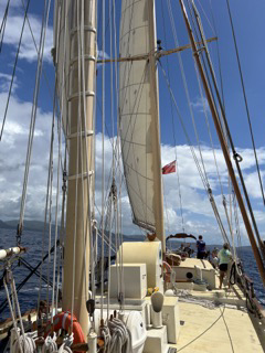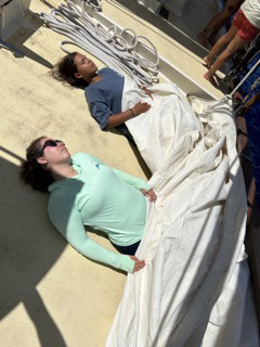 We got some sail training and practicing this morning! We put up all of our sails except for the staysail, which was being repaired. The fisherman’s sail was brought out and put up. That was super exciting, as it is the first time during the program that we have put it up. It was awesome. I am super excited for the regatta to start tomorrow. We start early in the morning and sail throughout the day.