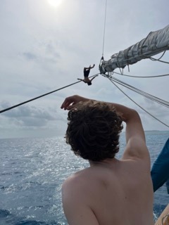 Readers, I must begin with an apology. My last day as Skipper saw me horribly seasick, and I fear Ive left a bad impression. Sailing is fun. Crossing the ocean is great. Ear canals? It is very settled now, thank you. Underway to Mauritius, my fellow Argonauts and I find ourselves in frequent squalls, moderate seas conditions far worse than the outskirts of Bali, and Ive never felt better! Huzzah, as I want to say. Today marks the fifth day of passage, and we are settling nicely into our new watch teams. My indoctrination into Watch Team 1headed by Gabe and Meg, alongside Philip, Amanda, and Avabegan with Storytime. What is Storytime, you ask? or maybe youve heard about it in a previous blog…? Storytime is indulgence. Storytime is introspection. Storytime is life. I debuted as four dads, all competing for the hand of Ava Russell, CEO of Big Corn, Alabama. In them, I met the four facets of myself: pining Hospital Dad, wise Psych Dad, starlet Dad on TV, and tragic Dad at Home. I just asked Travis what Watch Team 3 got up to last night, and he said, Uh, I dont know. I consulted Allie, who informed me that they also ate popcorn while listening to Travis stories. Thrilling times! Watch Team 2 enjoyed the morning watch with overnight oats made by Drazka and Ainsley. WT2 also did a lot of heavy lifting in raising both the jib and the flying jib, pumping out the engine locker and anchor locker, and starting what may just be the Argonauts most monumental task to date: finding Clayson. Readers, I am sure you are all very familiar with Clayson by now. He is the rat we picked up in Bali and has been nursing for forty days and nights. He has carried entire glue traps to and fro, eaten most of our bananas, and chewed our HDMI cables the monitors in the salon are barely working nowadays! The class has been brutal lately! (Side note: we had our second Oceanography quiz and Seamanship lines test, where we had to know the name and purpose of every line on deck. Flying colors, Mum.) This all started back in my Watch Team 3 days when Bodhi and I had to clean up two bilges worth of rotten milk; I remember so vividly those chewed-up cartons. How nave I was then. Some days ago, the staff decided enough was enough, and Clayson ate rat poison. He was given a week to live. Its been about a week now, hasnt it? And what did I wake up to this morning but the faint smell of death wafting around the salon? It couldve been the rotten eggs from yesterday. It couldve been moldy potatoes. It couldve been Clayson. Only time will tell. Personally, I must admire Clayson for his resourcefulness; well-named, I can only assume hes been blessed by Pallas Athene and tasked with sailing the ocean blue; we can only hope that (if) when he dies, its not in the wall. Kileys ripping her boat check, and Im getting distracted while chatting. I shouldve put the coordinates in my blog, she says, and now Im stealing her idea: hello from 15*31.136 S, 86*30.013 E. Conditions are slight and sunny with minimal clouds and some windchill. Off she goes to the engine room, then down below. What else? Head Chef Amanda made a really tasty dinner. I didnt lose it over the starboard rail! Big win. This happened during our 2-6 watch, and Ava was helping out as a sous. Meanwhile, Gabe was changing the oil and then fixing the heads, leaving Meg, Philip, and I on a three-person watch. It was really nice. They both said it was their appreciation of the day, and I felt a bit vain for saying the lines test. Alas, now that I am told to ready the fish sheet, I know exactly where Im heading. Todays squeeze question was, howd you get your name, and what does it mean? Some standouts include Bodhi, named after the tree the Buddha was enlightened under; Ben, who really liked Beanie Babies; Amanda, whose parents were expecting Robert Richard; Alienor, named after a queen of England and France; Ainsley and her uncles ex-girlfriend; Kackie, not Kaki; Will, its just a family name; Philip, an unexpected light; Kiley Grace for Grace Kiley; and so on We ended the squeeze with a classic HUZZAH. Readers, if youd like to follow along at home, squeeze, cry out, huzzah! then throw something for good luck. Nothing will assuage the mid-cruise blues like a good huzzah. Mauritius by tomorrow? I cant say for sure, but the Nav is estimating two weeks or so. In the unlikely event that we dont make it there before November 10th, happy birthday, big brother! Im thinking about you and the Bunny a lot. Not as much as Im thinking about Sheba, though. Brrrrpt! Last night, I was snuggling my remarkably Sheba-shaped airplane pillow in bed and felt a sudden surge of love. My heart felt so warm, and I could only think of my friends who were family back home and who mustve been sending it. It was received! I send it back in droves! x Juju