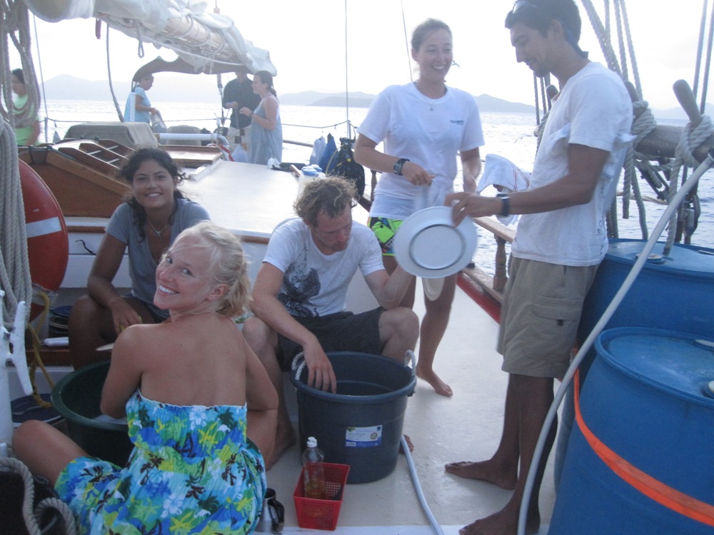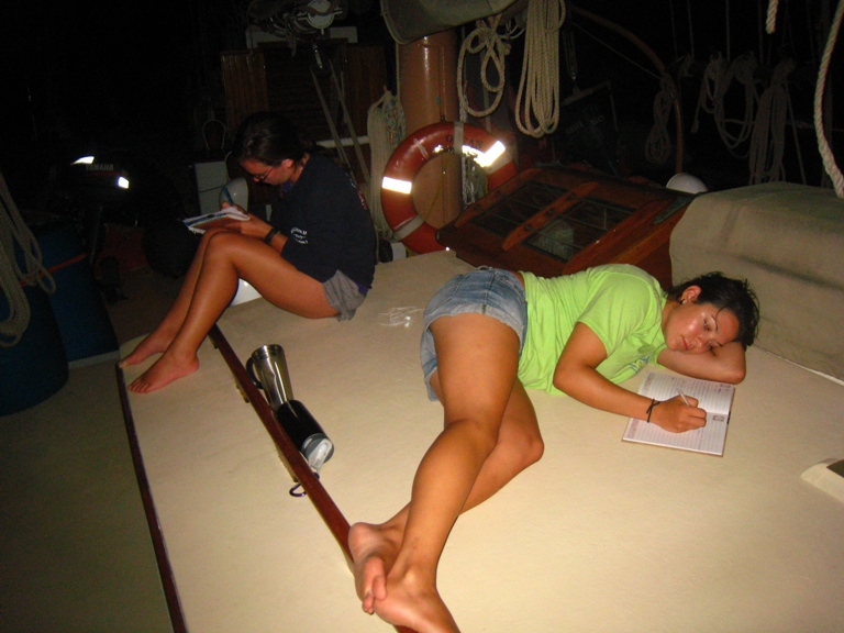 Day 38 was the last due date on our schedule of assignments, and so we began the day presenting our oceanography research projects to the rest of the group. The projects ranged from experiments with pH to the analysis of reef health in the Caribbean. Each group did a great job, and listening to each other, we all found out some interesting stuff about the world around us. The afternoon was relatively mellow as we motored over to Salt Island and went on a short snorkel around its coastal caves. Then, we had our last meal aboard Ocean Star, a wonderful dinner of pasta and garlic bread. I will surely miss sitting down for dinner with some beautiful island in the background lit up with the colors of a setting sun. Finally, as I write this blog, the rest of the crew is scattered around the boat, and they are writing personalized cards to every other member on board. It will be hard to leave these amazing people, but it is nice to know I will have 18 cards to read from each of them as my plane takes off for the US.