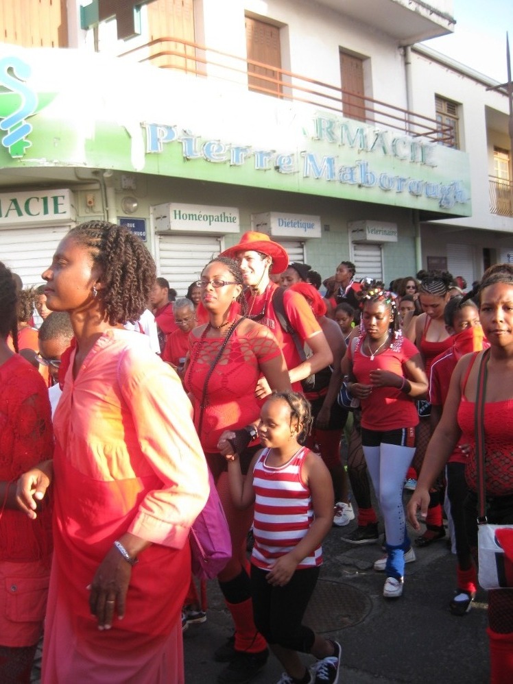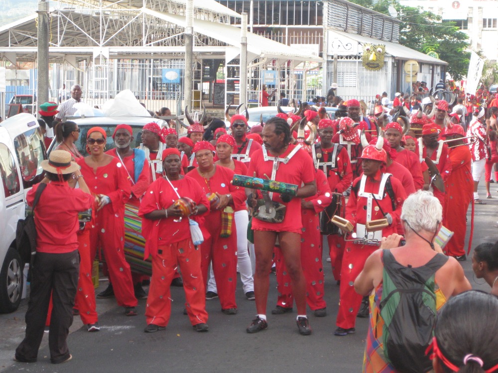 Bonjour from Martinique! We started off our first full day with both our science classes (Oceanography and Marine Biology) right after breakfast. After our classes, we had the entire day free to explore the first French island of the voyage. We headed to land to explore the cafes and open markets while adjusting to using the Euro-ooh la! The markets were filled with crazy costumes in honor of Mardi Gras, from hats to sequined dresses and boa scarves. After exploring the island, most of us came back to good ol’ Ocean Star to work on some homework assignments and escape the hot sun below deck for a few hours. Before dinner, some of us headed back to shore to watch the Mardi Gras parade. The city was celebrating with crazy costumes, lots of red attire, and even coconut bikini tops (for the males!) as the sun set on another beautiful day here.