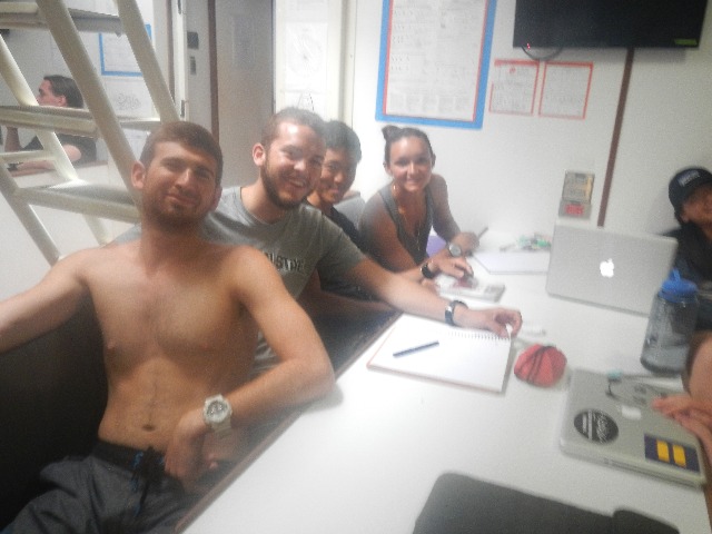 The sunlight was especially appreciated today, thanks to Kimi, who taught us the mechanisms of how our star powers ocean ecology in the oceanography class. We also participated in a modified version of the Myers-Briggs personality test today in SLD. We answered questions about every fellow shipmate regarding introversion/extroversion, sensing/intuition, thinking/feeling, and judging/perceiving. The results will be analyzed in an Excel spreadsheet, and we will compare how we rated ourselves vs. how others rated us. This type of intrapersonal reflection is an everyday phenomenon onboard, although it takes on many forms.