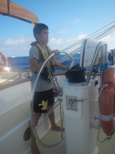 As the last skipper, I had everyone reflect upon what they feel grateful for today. Naturally, many loving thoughts and feelings were sent back to our families and friends back home. None of us would be on this adventure without the unconditional love and support of our families, so I ask everyone reading this blog right now to feel the energy of our gratitude within your hearts. As I stare out the chart house window at a school of flying fish diving into enormous swells reflecting the golden hues of sunset, I become speechless.