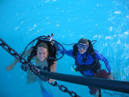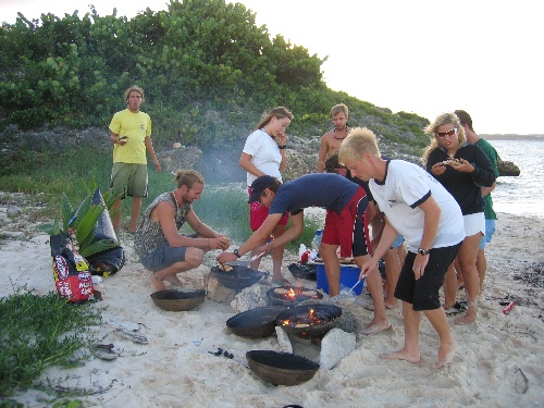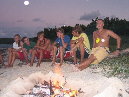 We started the morning early by filling up with fresh water and diesel and left English Harbor prior to breakfast. We had Theo’s chocolate chip pancakes underway as Near Enough was slowly making her way against large swells on her way to Green Island. We had to hurry up to clean up after that as the dishes were threatening to slide overboard in the swells! After a few hours of motor sailing and careful navigation around reefs and rocks, we anchored at Green Island. Boomer went windsurfing right away, and most of the crew also quickly jumped in the water as everyone was happy to be off the dock and in clean water. In the afternoon, we conducted a navigation dive, which was the certifying dive for all those getting their Advanced Diver certification. We concluded the day with a beach BBQ and campfire on Green Island.