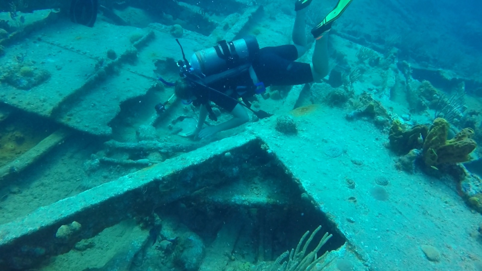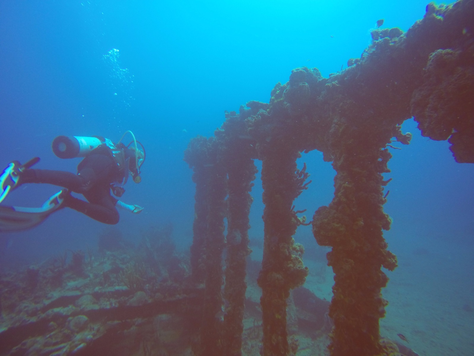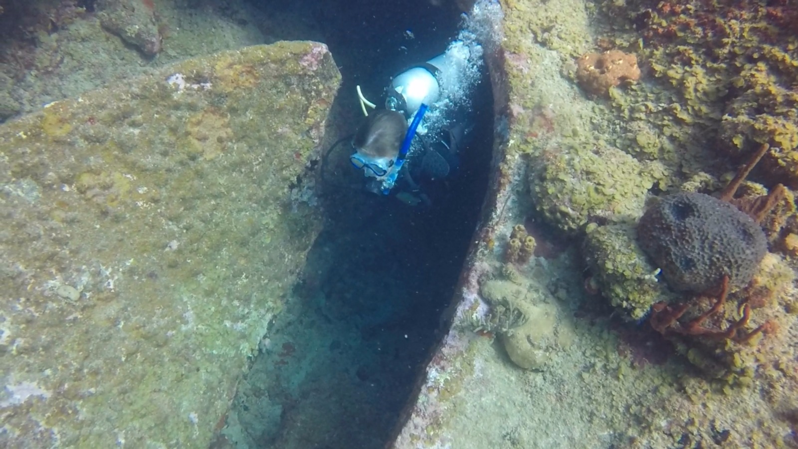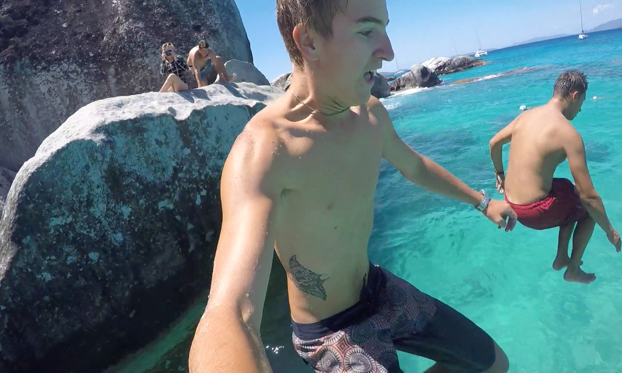 Our last passage came to a close this morning as Ocean Star made its way through the Round Rock passage at 06:17. We have finally returned to the British Virgin Islands for the last days of our trip, and we are all very excited to be back. Our anchor dropped in the early hours of the morning right off of Virgin Gorda, and the crew was treated to a delicious chocolate chip pancake breakfast to fuel us for the busy day ahead. Our first adventure: “The Baths,” a beautiful structure of giant boulders and cool pools to climb through and splash around in. After climbing through huge boulders and narrow crevices, some of us stumbled across the hollow rock you can swim under and peek your head into. Others climbed upward to find the jumping rock and flew off into the ocean. Once noon hit, we were back aboard Ocean Star, and we quickly hoisted anchor so that we could motor over to Salt Island. We ate lunch on the way to our new destination and cleaned up just in time to drop anchor. We spent the afternoon diving the wreck of the Rhone, a ship that sank in 1867 and has become a national park in the BVI’s. Once everyone got the chance to explore the three pieces of the wreck, we headed over to Great Harbor Peter, picked up the mooring ball, and sat down for dinner as we took in the familiar place around us. With bellies full of delightful eggplant Parmesan, we prepare for the last OCE review tonight as our final exam approaches tomorrow morning. Tomorrow marks the looming end of our trip with the beginning of our final exams! Wish us luck.