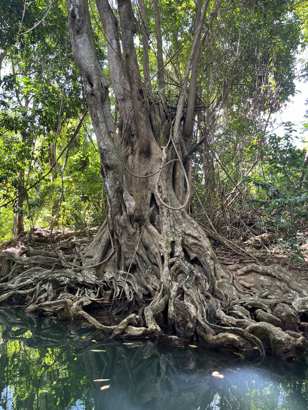 We split into two groups and hit the river, Secchi disks, and refractometers in hand. My boat consisted of Maddy, Alva, Kip, Charlton, Conor, Stina, Laszlo, and our dutiful mock-coxswain Will. We quickly decided to go above and beyond in our data collection, counting crabs, fish, and these funky little duck-like birds aptly named Water Chickens (101 crabs, 189 fish, and five water chickens for those concerned). Continuing our epic Pirates of the Caribbean-themed tour, whether intentional or not, we got to see the actual location where Calypso’s house was built, and the scene was shot in the third iteration of the hit movie franchise. Understandably, this inspired plans for a boat-wide Pirates movie night soon in our future.