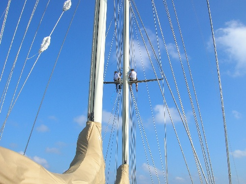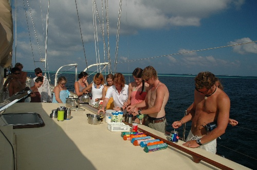 Today was a great day of cruising and swimming. We started off motoring North in search of a good anchorage. With two crew members up the foremast to spot reefs, we slipped our way through the atoll choosing among a string of beautiful spots to drop the hook. We found our spot, settled in, and then went for a much-needed swim. After an hour or so, we were approached by the military, who stated that we needed to relocate due to some exercises that were about to take place. Ok, so we moved. We called our agent for some local knowledge, and following his advice, we ended up at Budabados off the Bandos Island Resort. We settled in and then had “tea time” to celebrate Eliot’s birthday and apparently the Queen. The day ended with a Marine Biology exam and delicious lasagna.