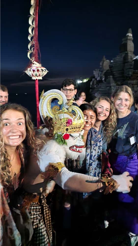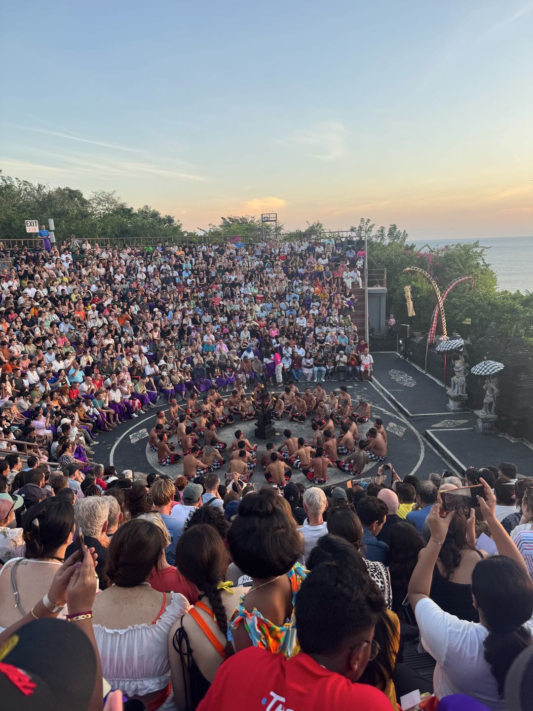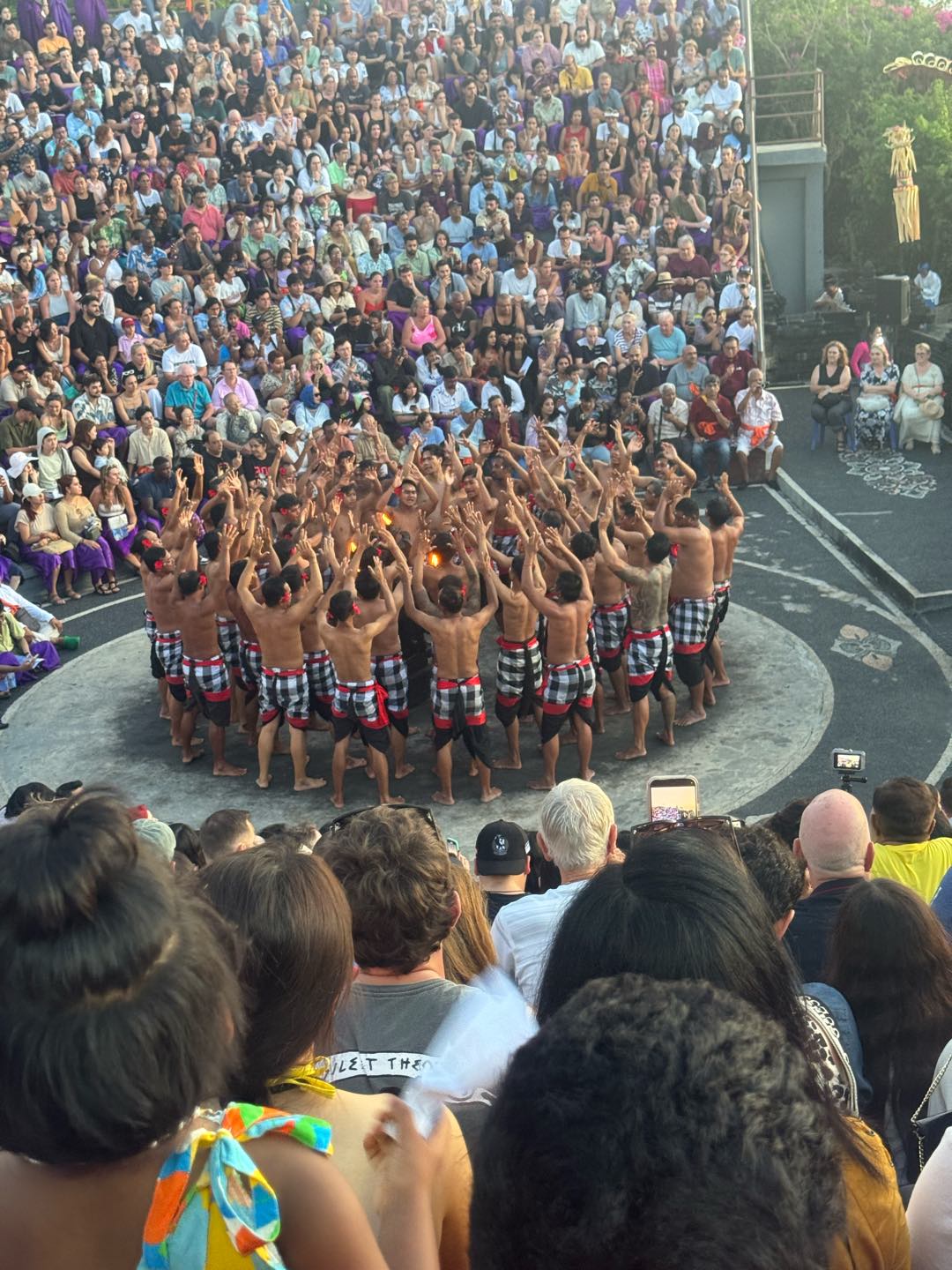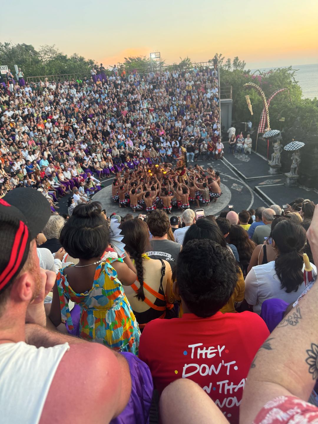 While the views and temple were an awesome experience, we all gathered for the main event, the kecak dance. Kecak dance is an ancient Balinese tradition that has a series of chants and coordinated dances to tell a story. In the case of the Uluwatu Kecak dance, it tells a traditional Hindu story about Sri Rama and his battle with Rahwana. Truly an unforgettable experience with long chants, fire, acrobatics, dancing, and high energy; it was something worth spending a lot of time on. Post kecak dance, we made our way over to dinner at a local spot. As I am sure you readers at home have already been told or have heard, many people went a bit overboard with access to smoothies, milkshakes, cheesecake, ice cream, pizza, burgers, live music, and lots of local faredefinitely a well-enjoyed meal after a long day out.