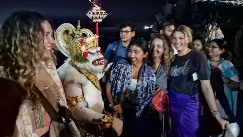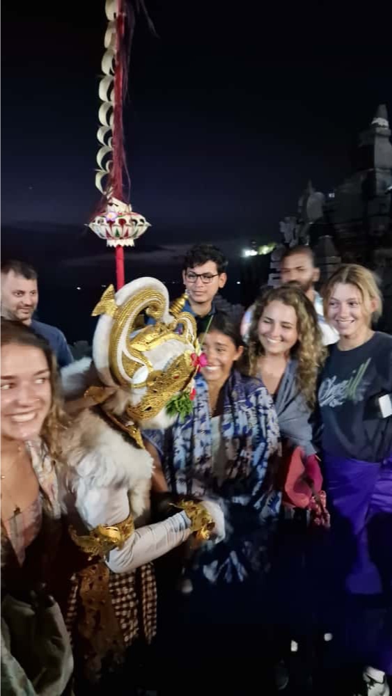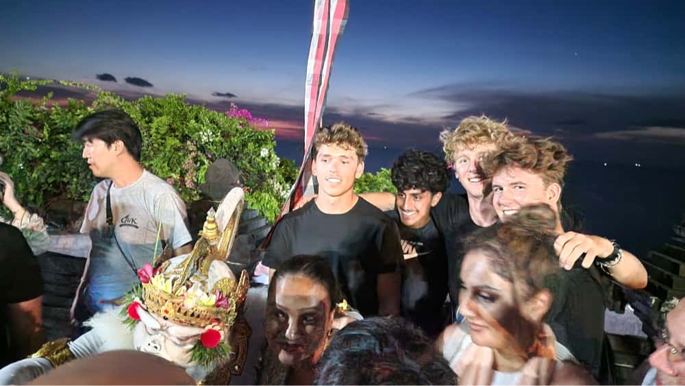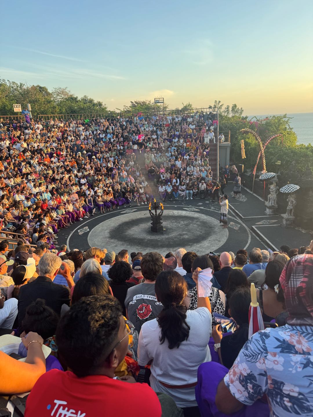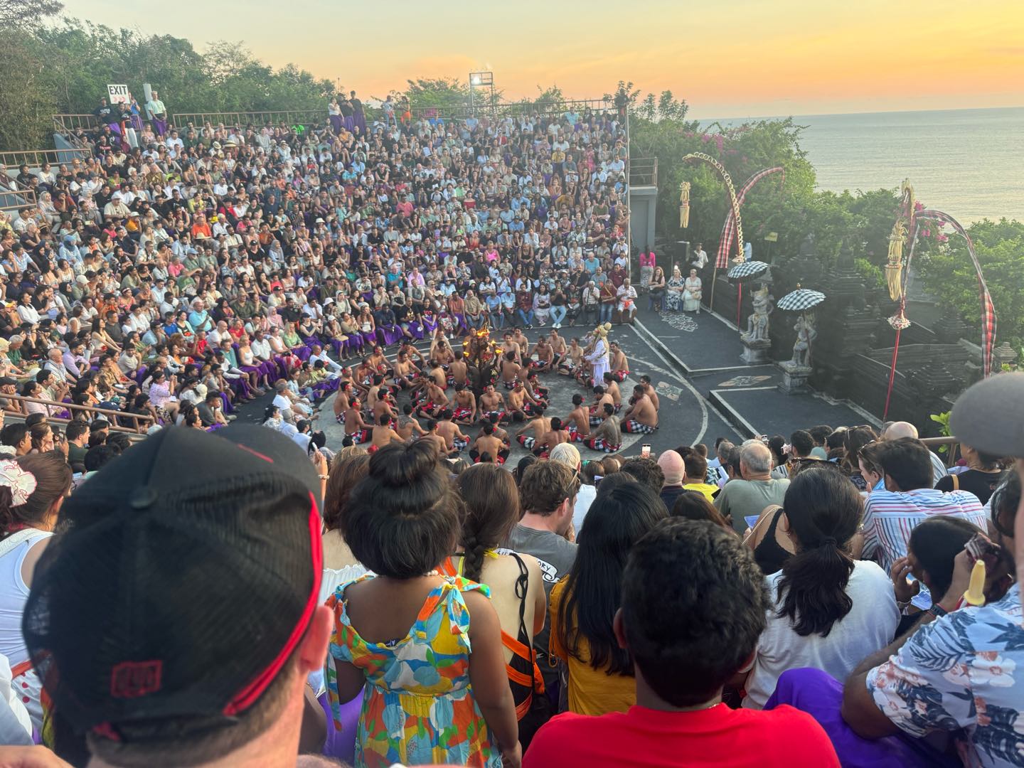 While the views and temple were an awesome experience, we all gathered for the main event, the kecak dance. Kecak dance is an ancient Balinese tradition that has a series of chants and coordinated dances to tell a story. In the case of the Uluwatu Kecak dance, it tells a traditional Hindu story about Sri Rama and his battle with Rahwana. Truly an unforgettable experience with long chants, fire, acrobatics, dancing, and high energy; it was something worth spending a lot of time on. Post kecak dance, we made our way over to dinner at a local spot. As I am sure you readers at home have already been told or have heard, many people went a bit overboard with access to smoothies, milkshakes, cheesecake, ice cream, pizza, burgers, live music, and lots of local faredefinitely a well-enjoyed meal after a long day out.