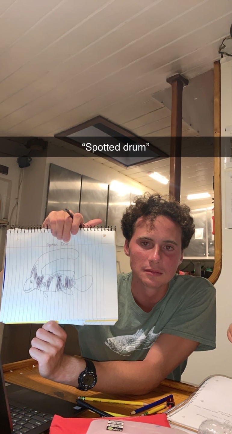 Picture 3: Topher showing me a drumfish and telling me he drew it when obviously it’s a picture