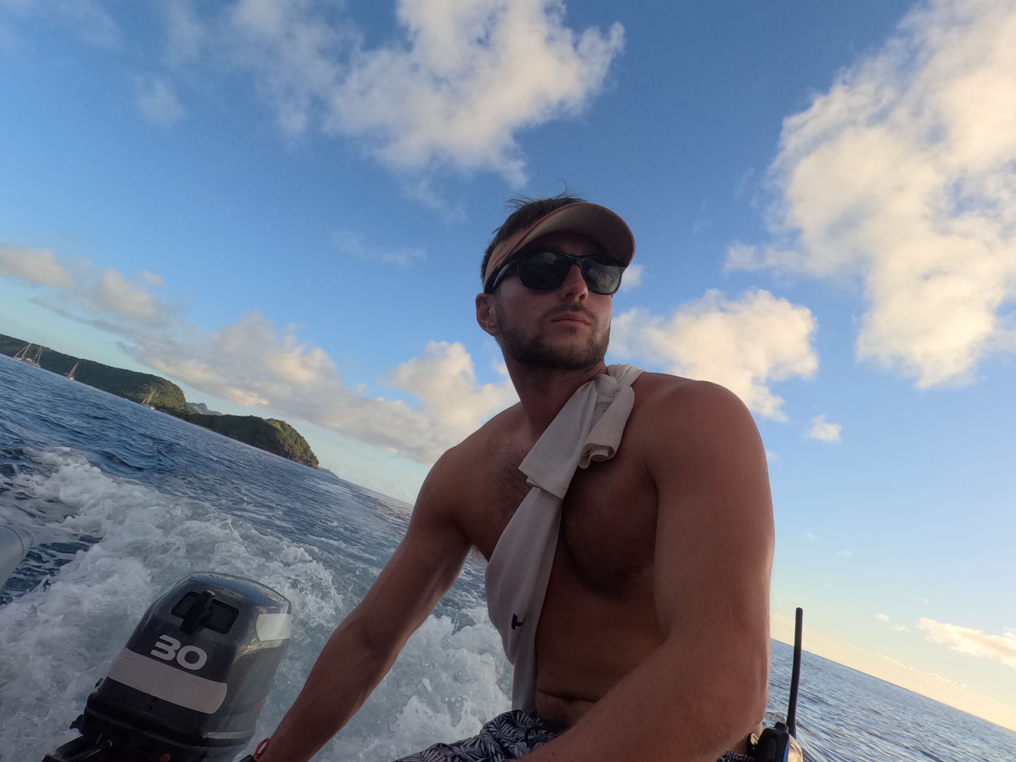 We finished our last drift through the pass and headed back to the boat, watching the horizon as the sun began to set. Captain Tom was finishing up haircuts at the stern of the boat. I had my shave out down, and some other people got cuts and shaves. We are pretty lucky to have a captain who doubles as a barber onboard. The sunset, we all had dinner, a swift squeeze, and now we are all finishing up our duties for the evening.