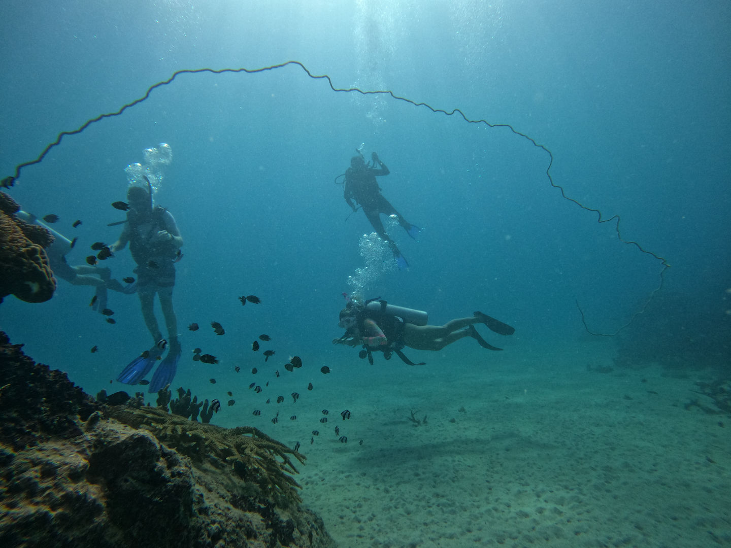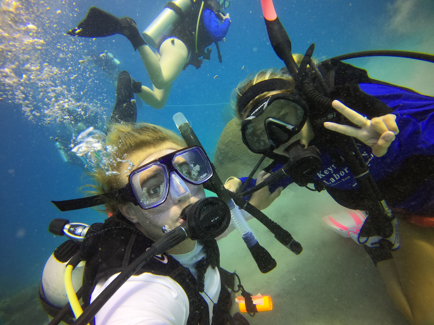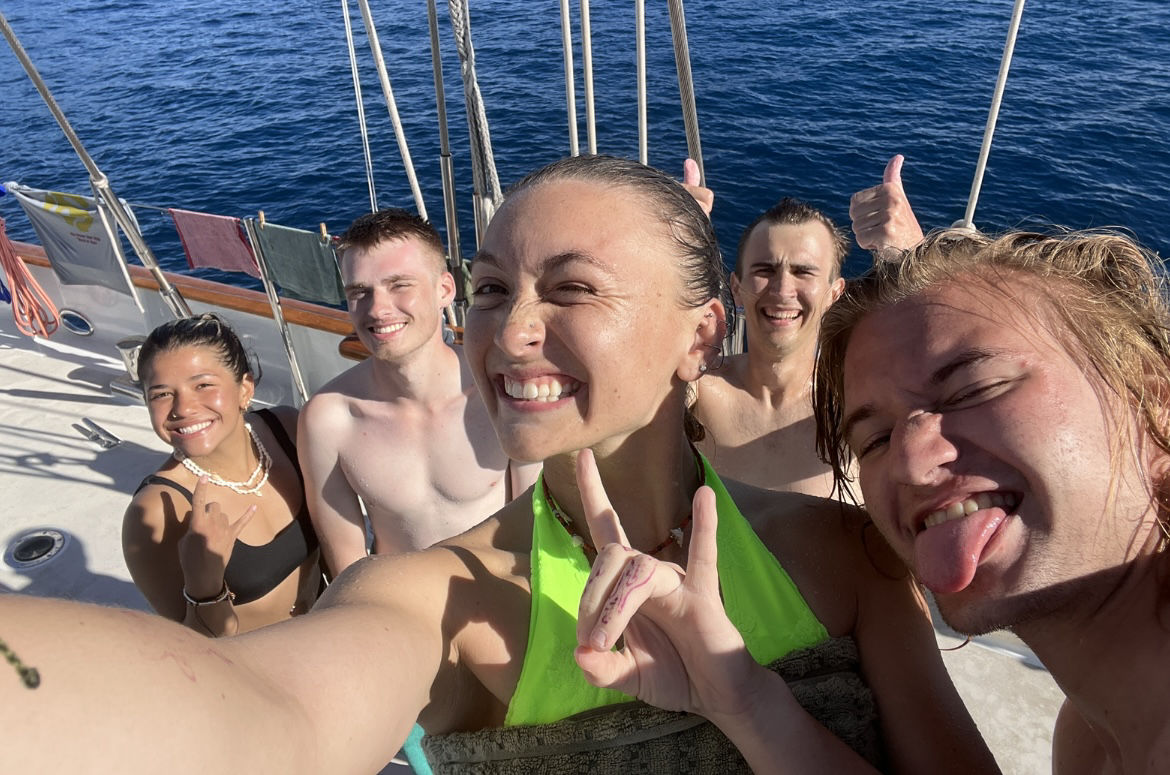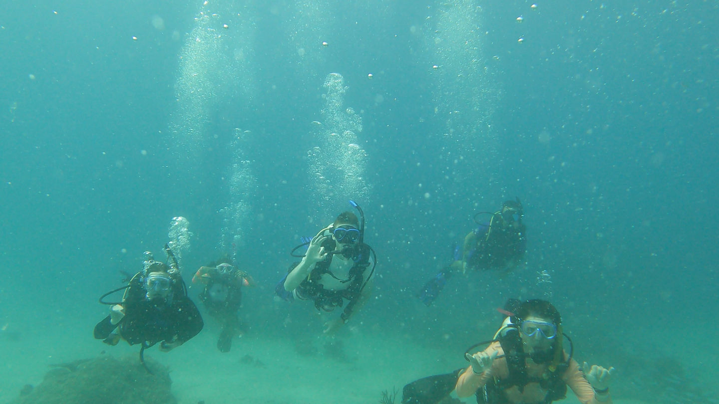 Almost everyone is now a certified diver, which is very exciting. The first group to dive here was our already certified divers, they had an awesome time, and all came back with huge grins sharing the fish they had seen and so excited to describe the corals. Next, we had our newly certified divers dive. They have now begun their journey toward becoming advanced divers. I had the privilege of taking this lovely group of new divers. Pictured are Barbara, Kirstyn, Romeo, Ethan, and Jack. They all did really great, and some of them saw a white-tip reef shark which was pretty neat. Emma also completed her open water certification today; congrats to her!
