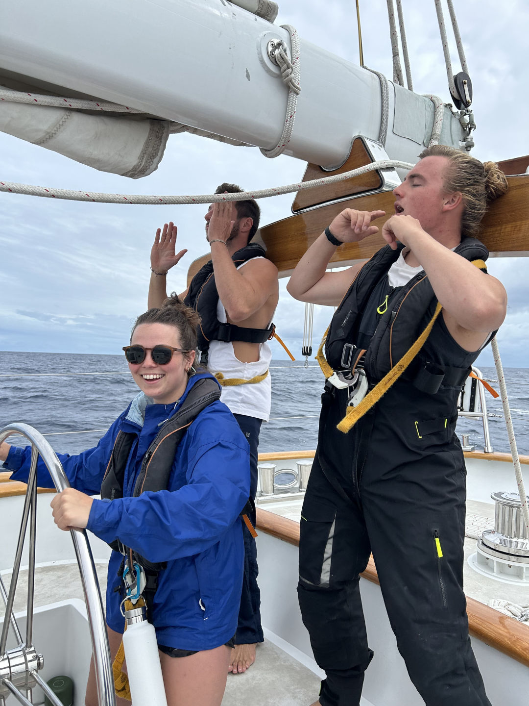 Hi guys!! Sydney and Kara are here writing the blog for our fearless skipper Drew. Our watch team (the BEST watch team) had the 8 AM to noon shift, and we were singing and dancing to sea shanties nearly the whole time. Some Pirates of the Caribbean soundtrack might’ve snuck in there as well. Gotta live the dream, ya know.