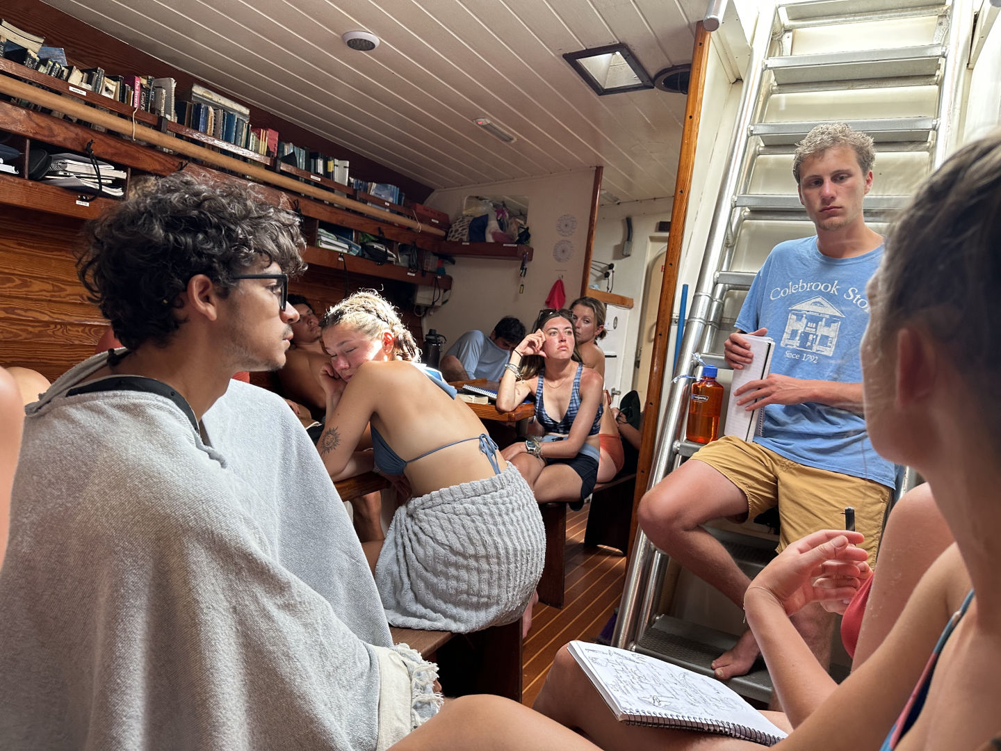 Who would have guessed writing the blog would be so difficult? Writing in my journal is so easy, but finding the words to write this has been a struggle! Though the most notable shout out I definitely got to give is to our head chef, Grace, who cooked three spectacular meals! The food was so good I even went back for 5ths. Today was a little all over the place since we grouped off into two groups, open-water divers and certified divers. The open-water divers are several steps closer to becoming certified after our double dive day. Our first dive was mostly skills, but it was still a blast. We all spent the time doing our skills together, and it was the best time! The current was very strong, but that just made diver tows even funnier, in my opinion. While open waters were diving, the certified divers were on board setting up the flying jib. Our last dive today for open water divers was more of a fun dive with compass skills and mask removal and replacement. The certified divers did the last knowledge reviews to become advanced divers and even got to practice their compass skills. We had one class today, which was leadership led by Griffin and Doron, who both did an amazing job with their presentations. They kept the class engaged and focused! Overall, it was an amazing day, and I am in love with this adventure/trip.