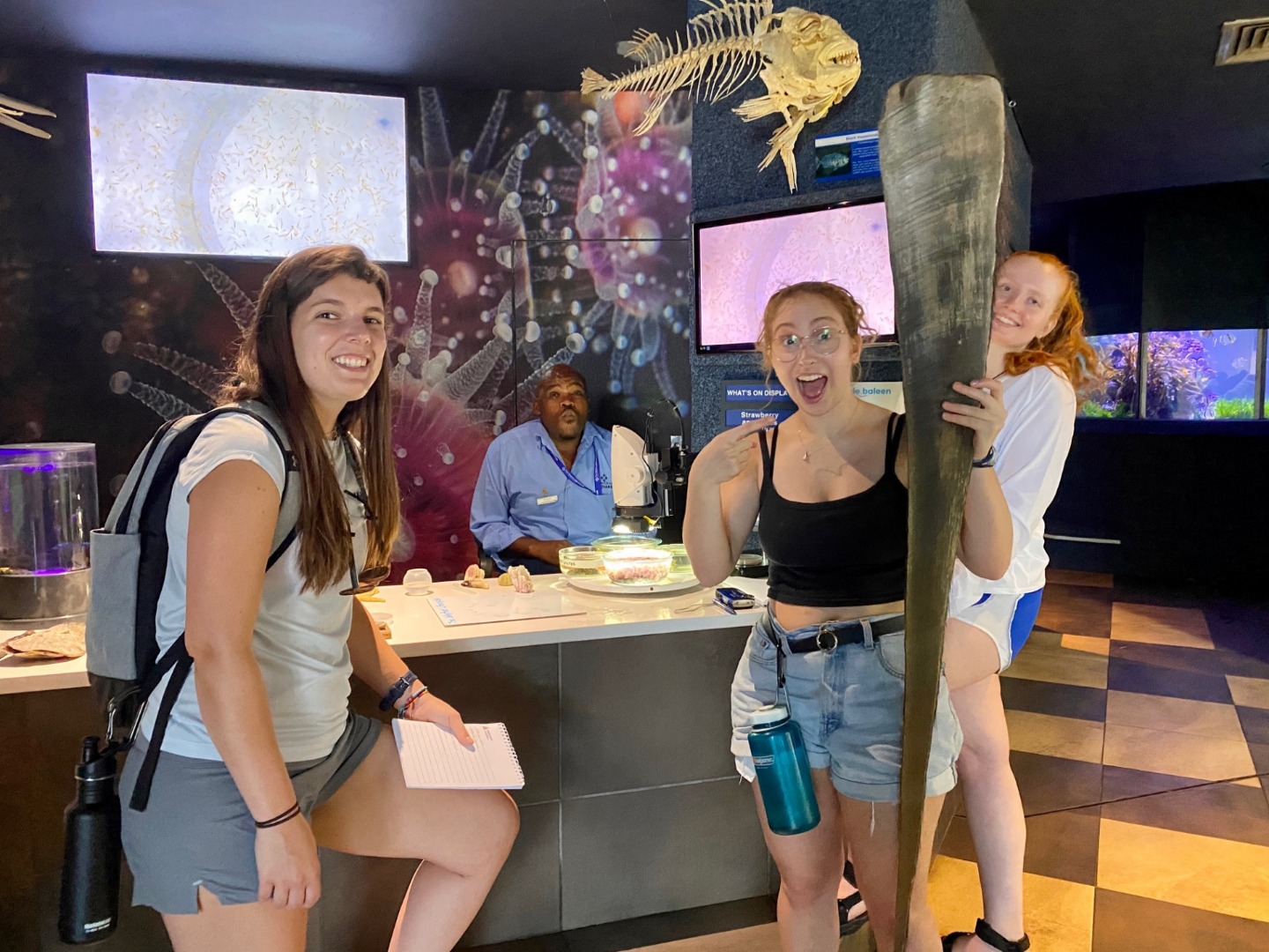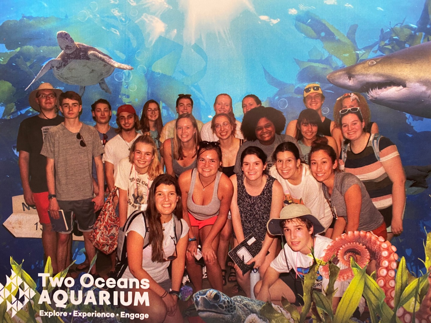 We had our first class today at the Two Oceans Aquarium, a much better setting than our lecture halls back home. We took down some species names and tried to sketch them (with varying degrees of success). We saw everything from Rockhopper Penguins to Great White Sharks to Evil Eye Puffer Fish. We watched the fish and penguins being fed and heard the stories of cool animals like Annette, humorously named because she was found trapped in a fishing net and has been rehabilitating at the aquarium ever since. When hearing their stories we were reminded of how important it is to live sustainably and to respect our place in nature, a lesson especially fitting given our current home on the ocean.