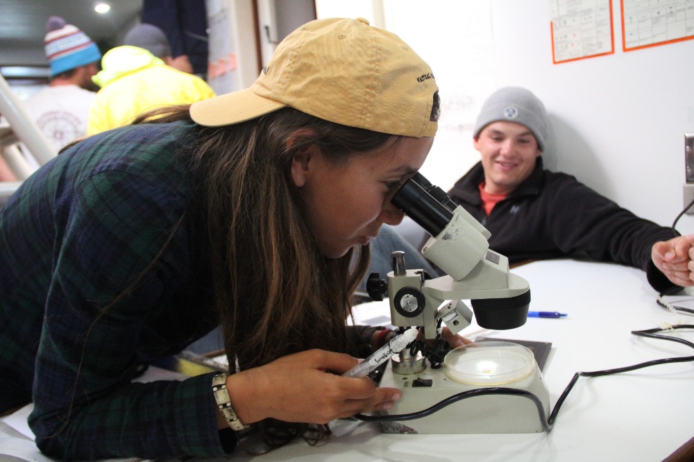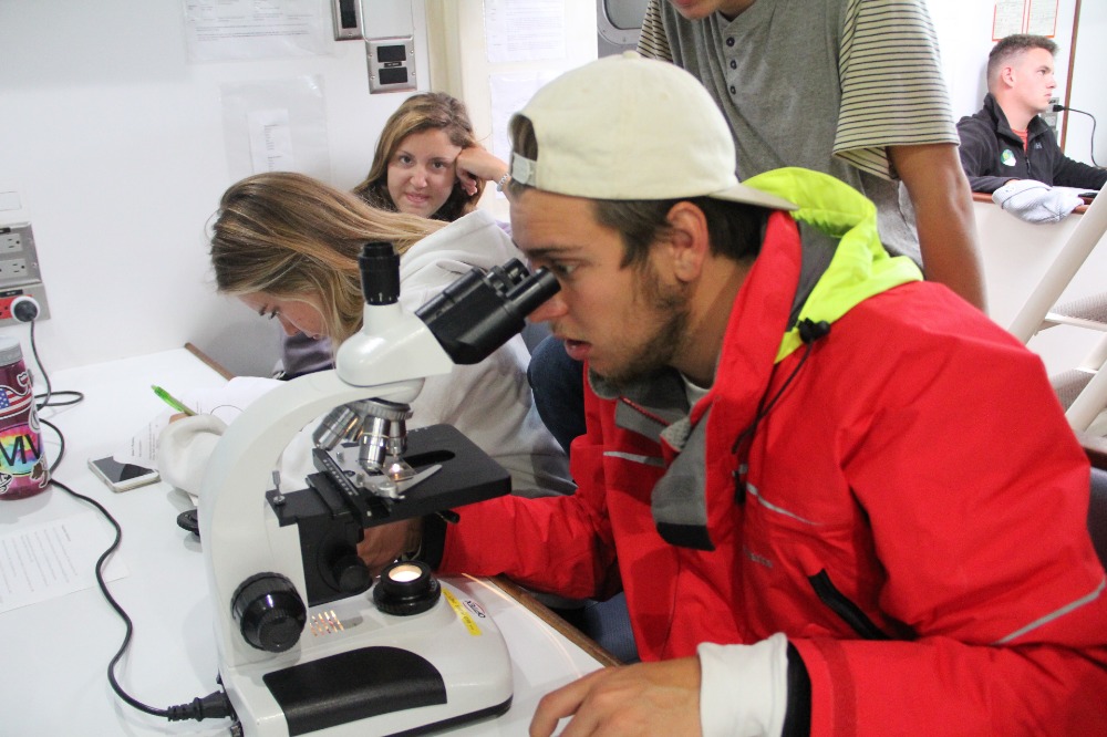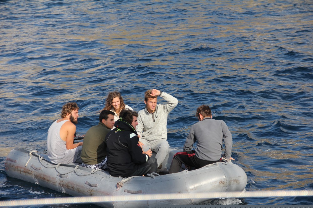 On a quest to gather tiny sea creatures for our lab, we hopped into the dinghy and set out like the marine biologists and oceanographers we are. While on this scientific exploration, we learned how to drive the dinghy. Some of us mastered the art of the throttle sooner than others. I think it is safe to assume I will be attending remedial dinghy driving school based on the screams of those aboard and those watching safely from Argo.