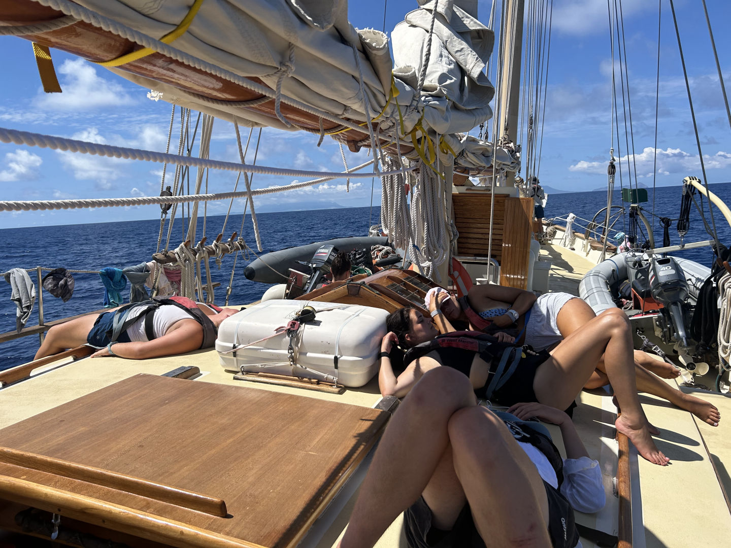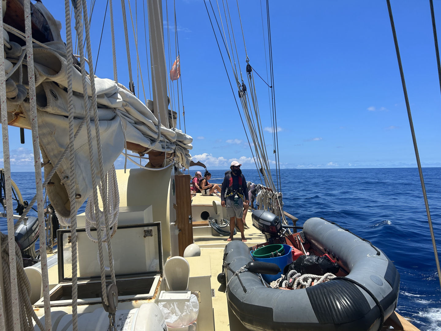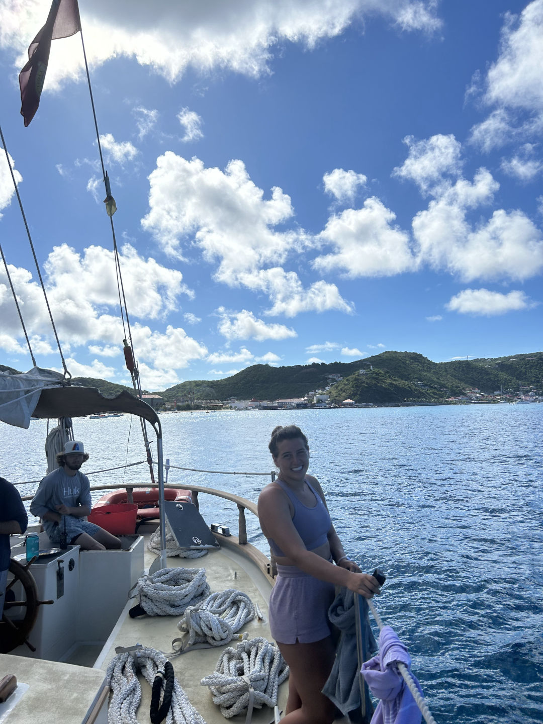 We woke up on the right side of the bed for an exciting yet sad day. Unfortunately, our time on the beautiful and “boujee” island of St. Barthelemy had to end. It was time for a short day passage to Statia. Immediately after breakfast at 8ish am, we set off the dock lines and went underway. Cleanup underway was about to ensue, and boy did it; we hammered it. After our amazing time on shore and our night of dancing, people had a lot more morale in them, and the laughter from the day before still radiated today. The passage was going well post-clean up, and we had some good free time throughout the morning before lunch, and I used that to take a nap. That 4-5 am anchor watch last night or this morning was heinous and brutal. So I am for sure grateful for that free time. The wind all day was directly pointing where we needed to go, so putting up the sails wouldn’t do much. We got there in the early afternoon.