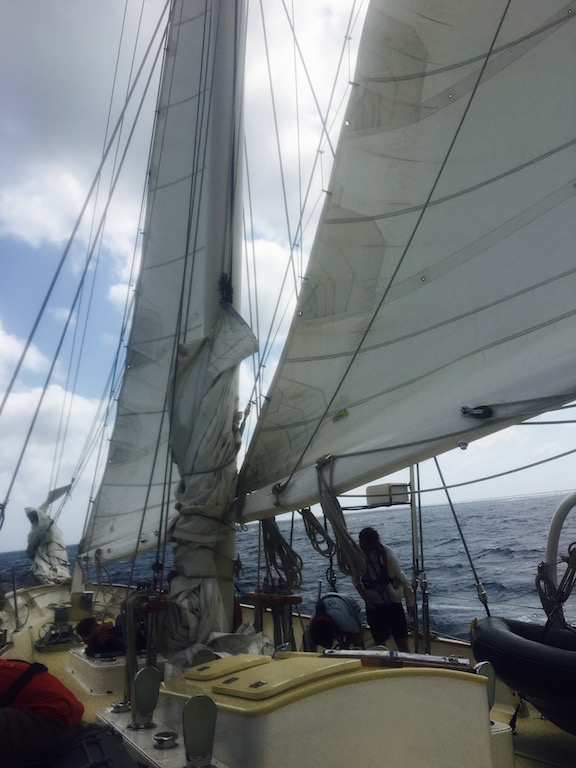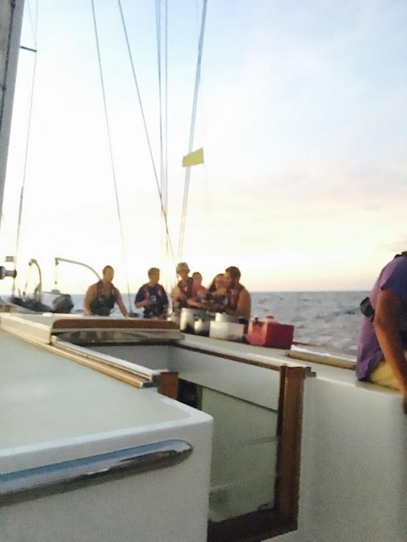 Today marks the morning we leave the dock in Bonaire for a 4-day, 600 nautical mile passage to Port Antonio, Jamaica! We began with passage prep this morning, then proceeded with Leadership class taught by our first mate, Ian. We took personality tests, which were hilariously accurate about all of us. We left the dock around 1:30 pm and raised three of the six sails. Later that afternoon, we had a Marine Bio lecture from Steve and had on-deck showers by using the fire hose, which definitely gave off some force! We began dinner, which was particularly tricky under the extremely rolly conditions, making quite the mess for clean-up crews! We have also had many flying fish jump aboard (and possibly hit a shipmate in the face) to see what we’re up to, only to have us running around panicking to get them back in the water! Day 1 passage down, 3 to go!