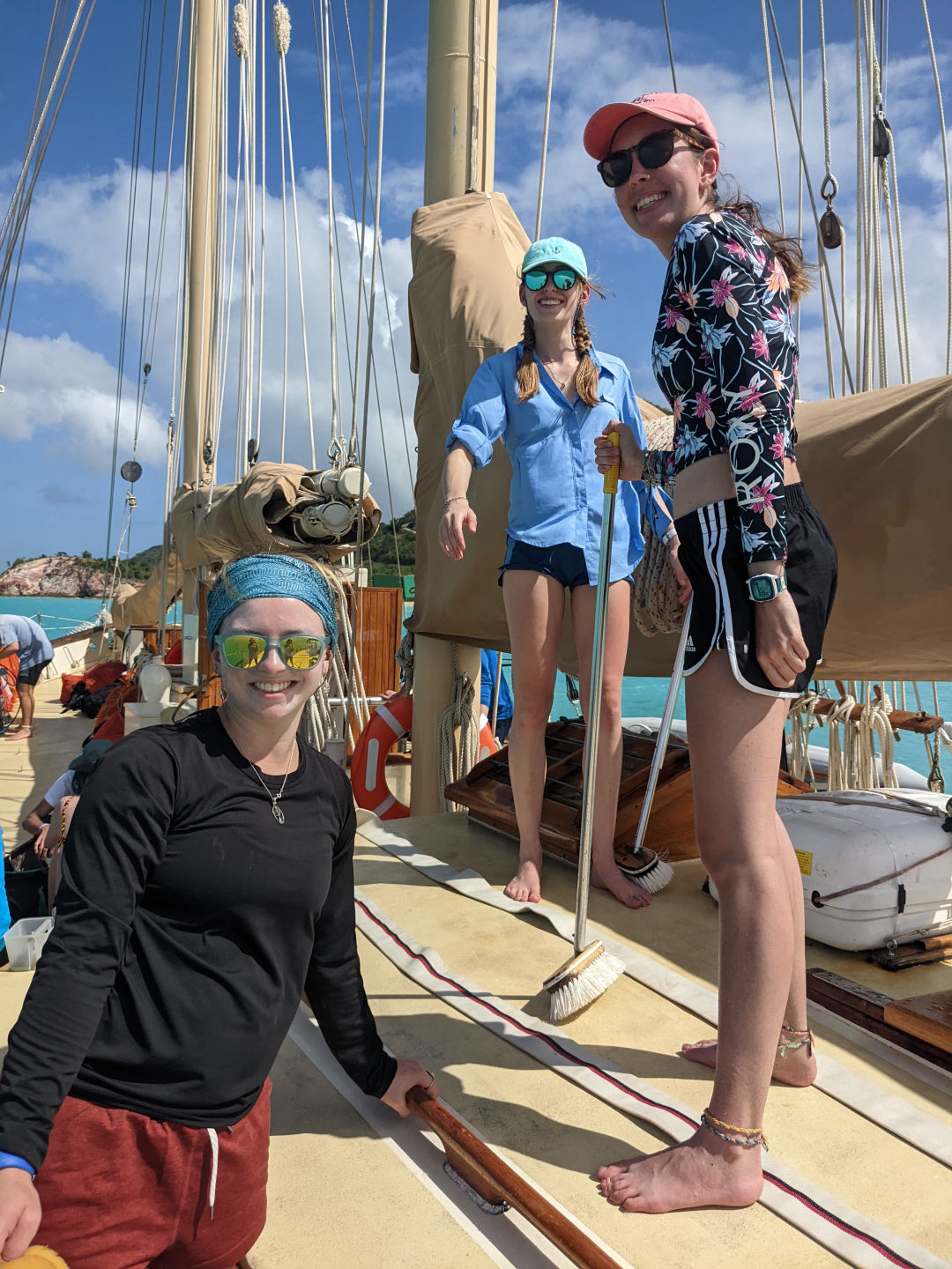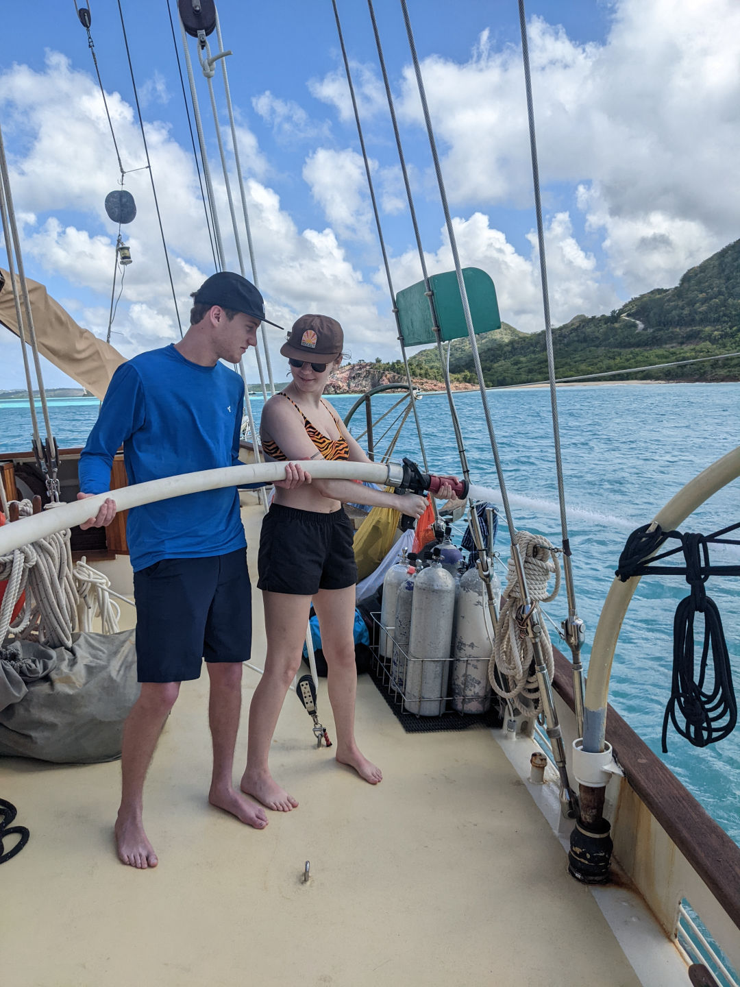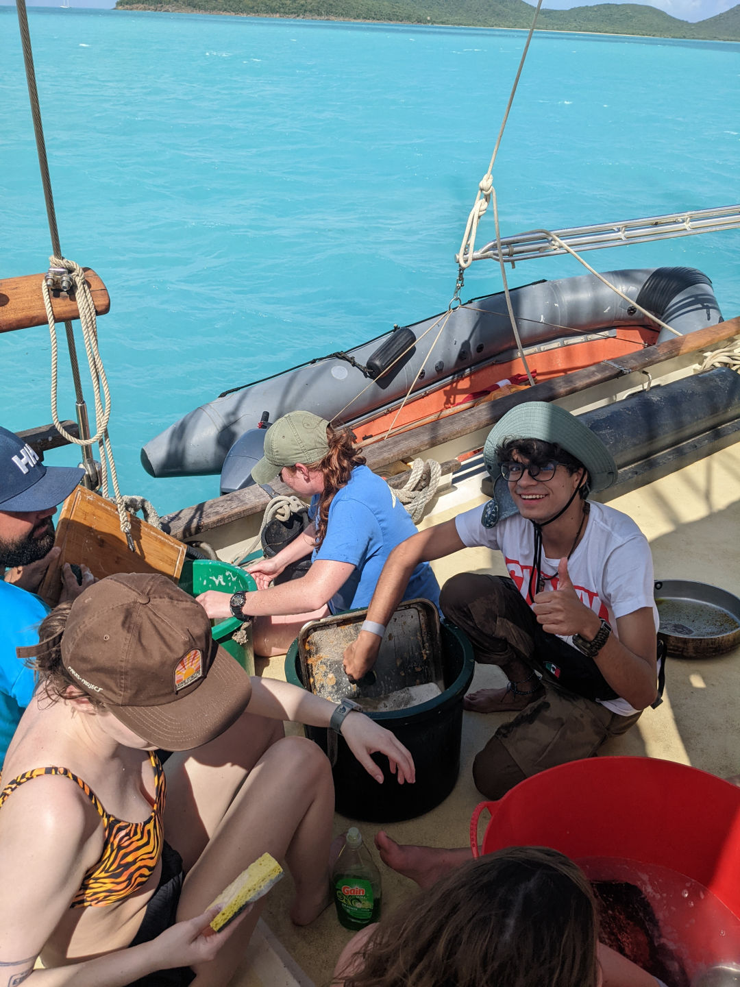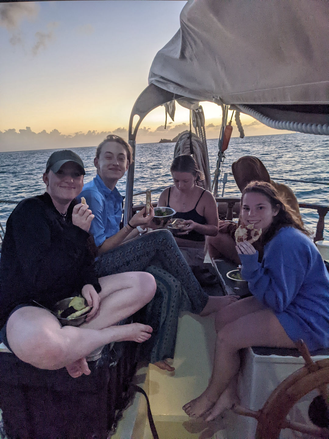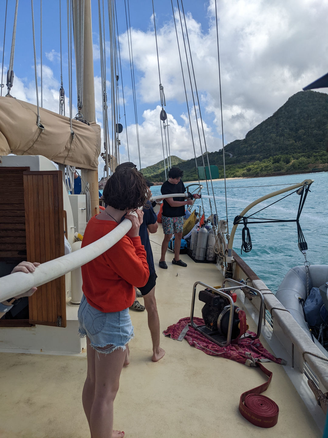 We started the day going over program policies and safety protocols. It was good to learn in-depth about all the policies and why they are the way they are. It was also nice to understand what to do in an emergency. One of the most exciting parts of the day was seeing a couple of rays jump out of the water next to the boat. After that, we were introduced to the leadership class. We learned about how the class is set up and what we will be doing. Then the students who are already Scuba certified were set to do a refresher dive while those who weren’t watched an informational PADI video. Unfortunately, the refresher dive was cut short due to very poor visibility. We finished off the day with another saltwater shower and a delicious dinner followed up by some great brownies. Day 3 was a great learning experience.