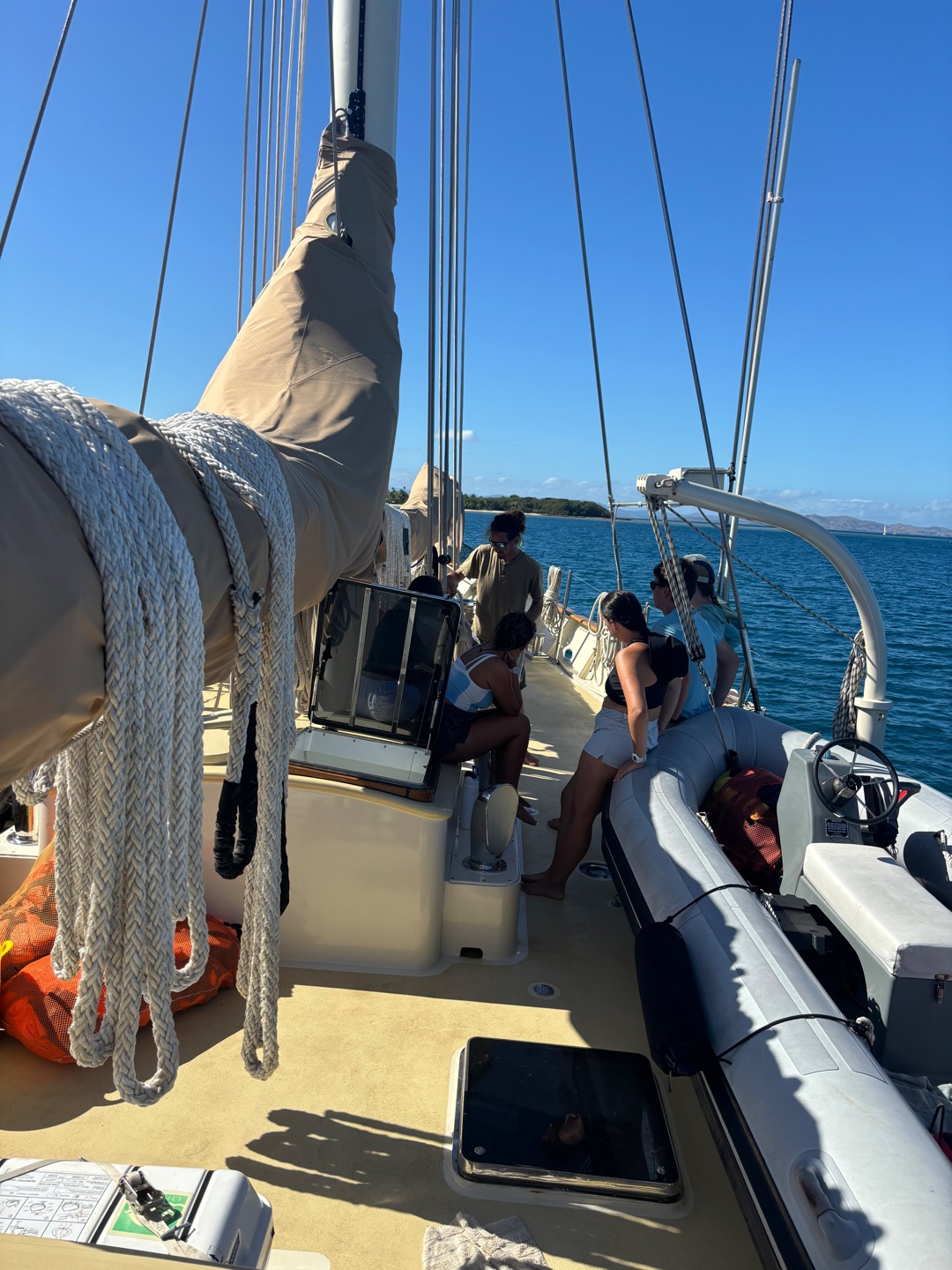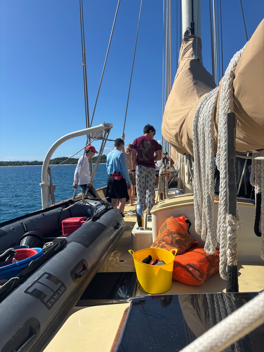 Could you imagine flushing four times for every bowel movement?! I couldn’t at first, but it’s the path to manhood and a master of piracy. The day was good, and it began at 7, with me as the skipper. I had class and was learning scuba for what felt like hours. We learned some pretty good knots while the certified people went scuba diving. Notably, Emily excelled, and Mathilda taught me many European capitals, and we had a good time conversing in Afrikaans. The food was spot on and consisted of very bold and exciting flavors. Per usual, we washed it down with water. We swam around in the ocean and enjoyed taking outdoor showers.