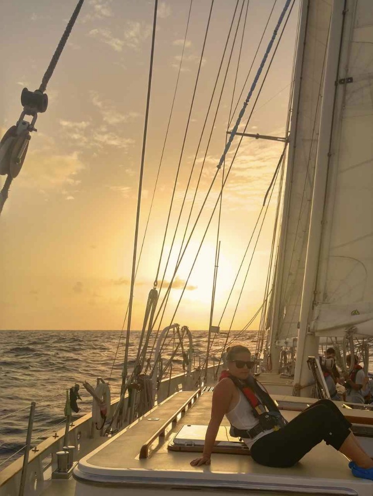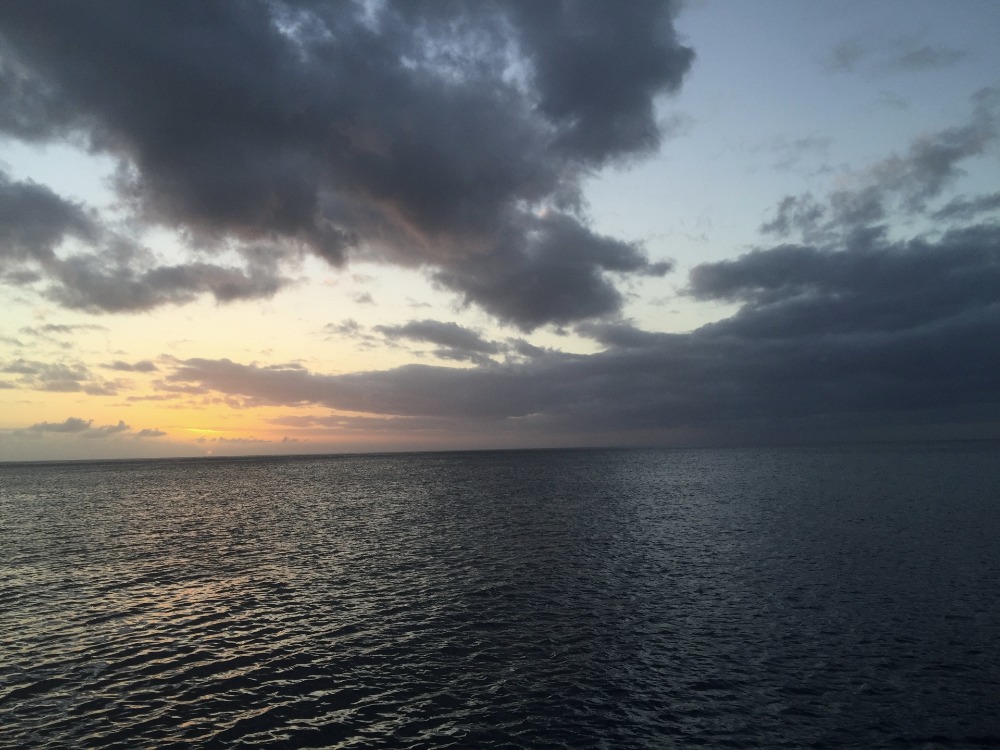 On another note, tonight, we hit a small squall and set our speed record for the trip, currently at 12.3 knots, which was pretty cool. It was pretty calm all day long, not exceeding more than about 10 knots, but after dinner on the horizon, we saw some rain and darker skies than usual afterglow following the sunset. We have a rule on board that while underway, we do not open up the hatches on deck; however, some of us did due to the humidity throughout the day and down below in the cabins. During that little squall, we went through came to some pretty massive waves crashing over the deck, and the starboard 6-man hatch wasn’t dogged from earlier, causing some very grumpy, sleepy, wet boys. We carried out our watches through the night, and tomorrow, we will be arriving in Jamaica around 0600!